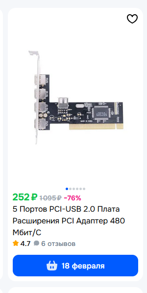 >>3690324 > Ну прекрати. Ну в таком случае годный совет от анона выше - плата расширения PCI-e'кспрессная с озона/авиты/днс'а, 3.0 за 450 рублей или 2.0 за 250