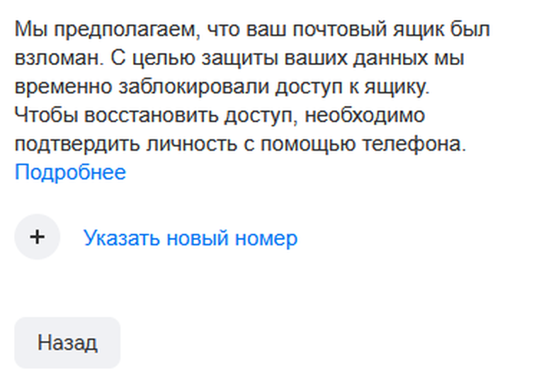 Как не дать ебливому Маил.сру свой номер телефона? Они выдумали возможный взлом, и теперь требуют номер, нарушая свои же правила, где написано, что можно восстанавливать доступ через резервную почту. Как это законтрить?