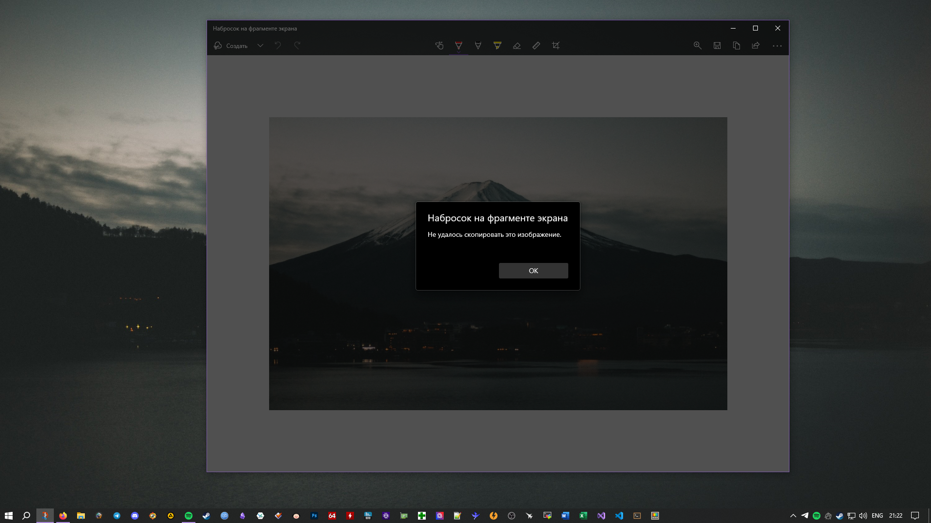> Поставь сам ручками. Поставил, но всё равно не срабатывает как положено. Даже если через 'Создать' попытаться, то скриншот он всё равно не даёт подгрузить в буфер, а при попытке скопировать его выдаёт пикрил 2. Походу придётся левую утилиту ставить для клятых скриншотов.