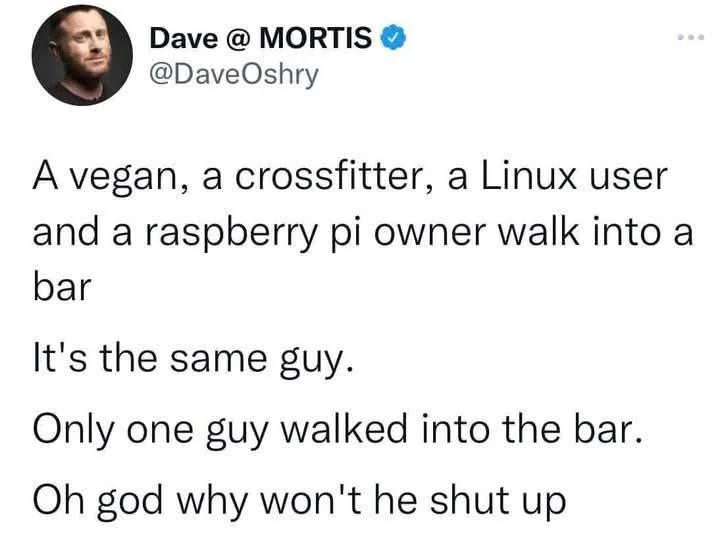 >>3622630 Это не коробка передач, это неосиляторы. Ну типичные такие. Потыкались, у них не получилось, они ничего не поняли, и теперь надо рассказать остальным какое это говно. Ноль понимания и порванное чсв. Про Линукс такие рассказывают что ничего не работает и надо учить все консольные команды. В тайлингах надо неделями ковырять конфиги и учить хоткеи. Ну вот в виме тоже всё очень плохо и надо выводить зубодробительную чечётку на клавиатуре, сидеть с штангенциркулем вычислять систему координат, а ведь можно было просто ткнуть мышкой. И как всегда: ой, это что-то надо учить, ой сложно, нафиг это мне надо? А если кто-то этим успешно пользуется это всё понты и пиздёшь. По тому что это говно и пользоваться этим не реально. Они же попробовали и теперь у них экспертное мнение.