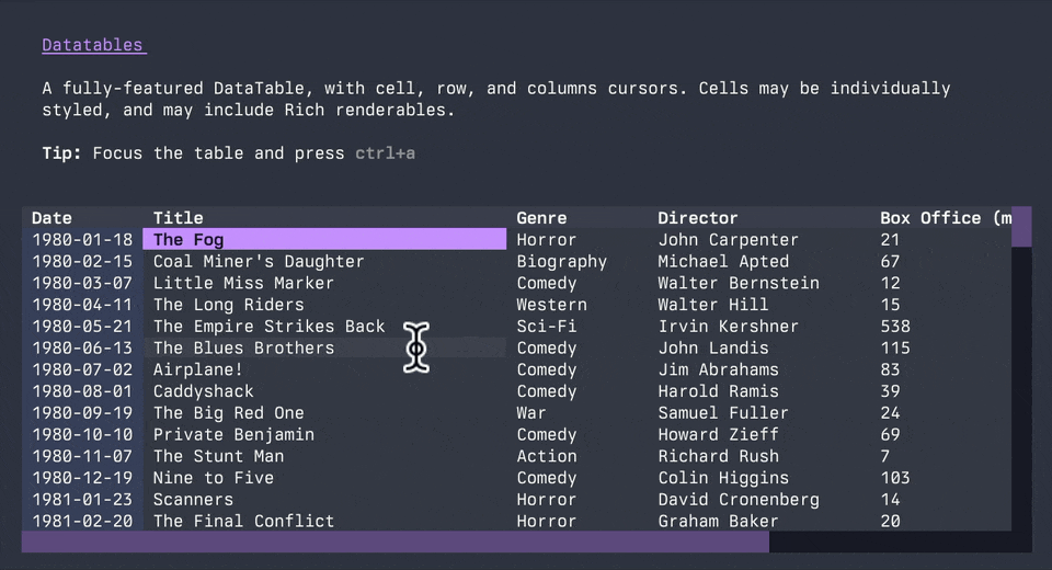 >>3623341 Ты хотел сказать https://github.com/mirror/ncurses А от твоей ссылки у меня бешенство. >Build cross-platform user interfaces with a simple Python API. Run your apps in the terminal or a web browser. >or a web browser. Я всегда впадаю в бешенство когда мне предлагают что нибудь в браузере запустить. Особенно консольное приложение.