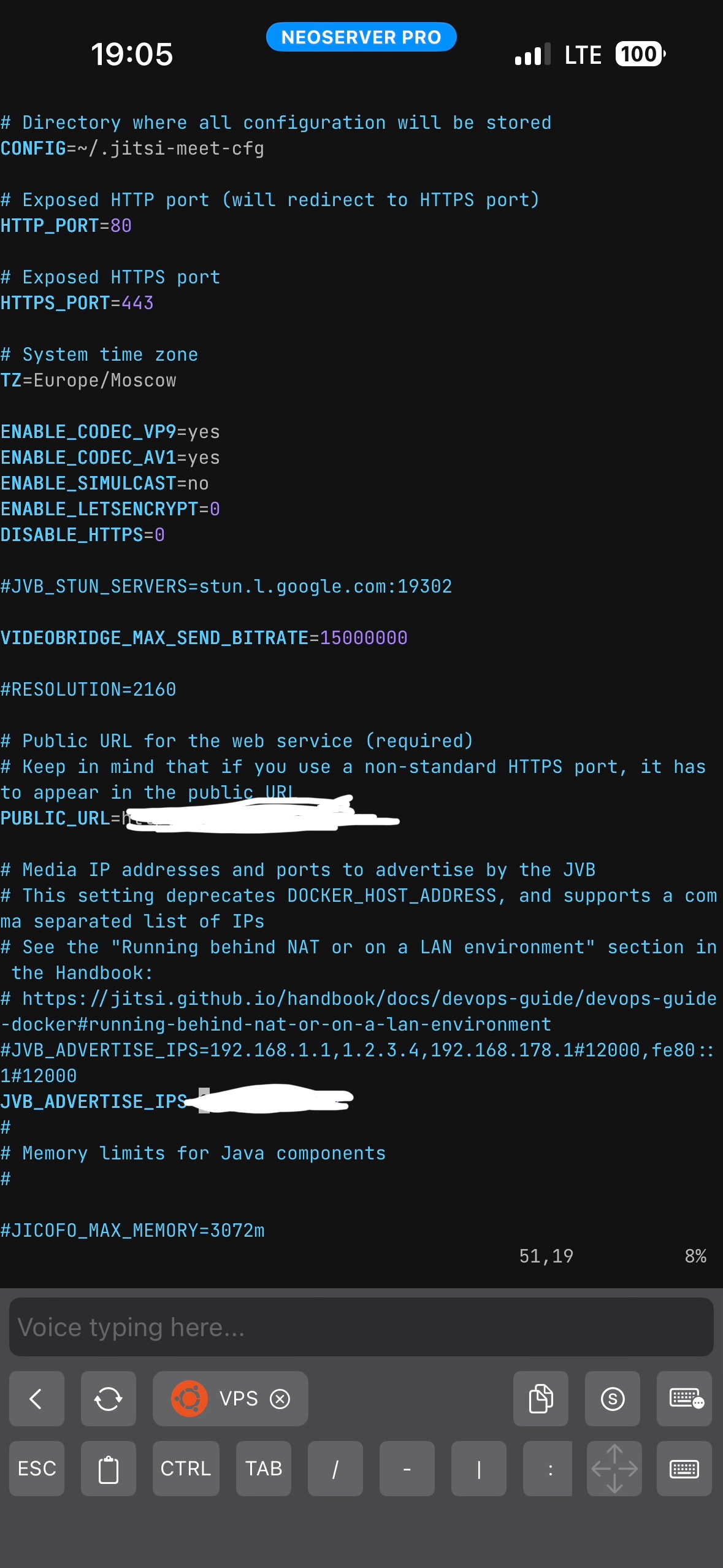 >>3686719 >И если на впс, я не увидел настройки вебсокета и боша На впс в докере с реверс прокси через кадди на поддомен ENABLE_XMPP_WEBSOCKET=1 на экран не попало Порт вебсокетов тоже в каддифайле есть Что такое «бош» хз >Это со стороны чего ты смотришь? Со стороны клиента, или видеобриджа? Это то что пишется если навести на значок соединения рядом с аватаркой. Я вижу у себя прием >2000 кбпс, а аплоад ~250 кбпс. Собеседник видит соотвественно наоборот. Я вижу собеседника идеально, он меня видит в 320р с битрейтом из жопы