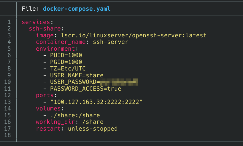>>3693641 Пароль лучше бы в .env, а compose файл в репозитории залить чтобы удобно было изменять/переносить. >А ты, анон, что используешь под расшаренную файлопомойку? samba, dlna webdav пробовал, но нормального контроля доступа как я понял не завезли