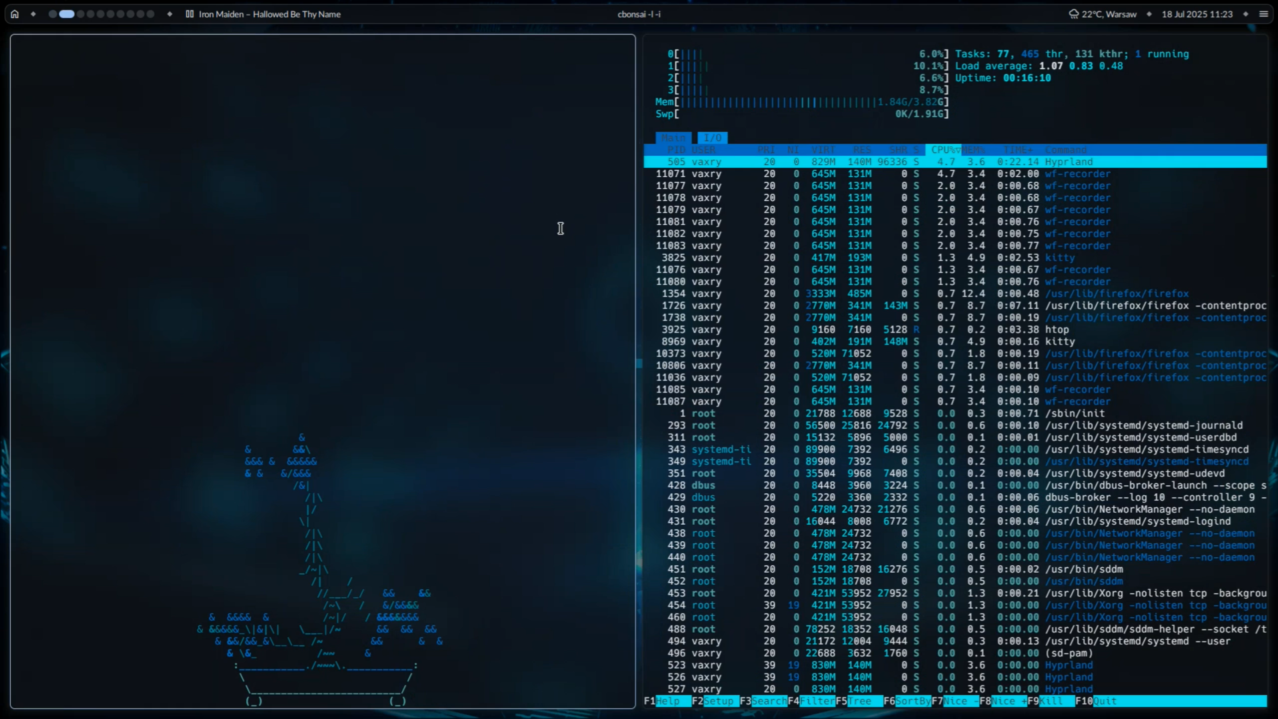 >>3624736 >конфиги на Hyprland Ну допустим. Не забудь воткнуть правила окон что бы не пялиться на единственное окно на рабочем столе с отступами. Раньше это делалось одной строчкой, а теперь под это портянку запихали в вики. Всё для людей. >Emacs Это то нахуя? Зачем тебе Емакс и нахрена его ковырять когда есть готовые сборки типа Дум Емакс?