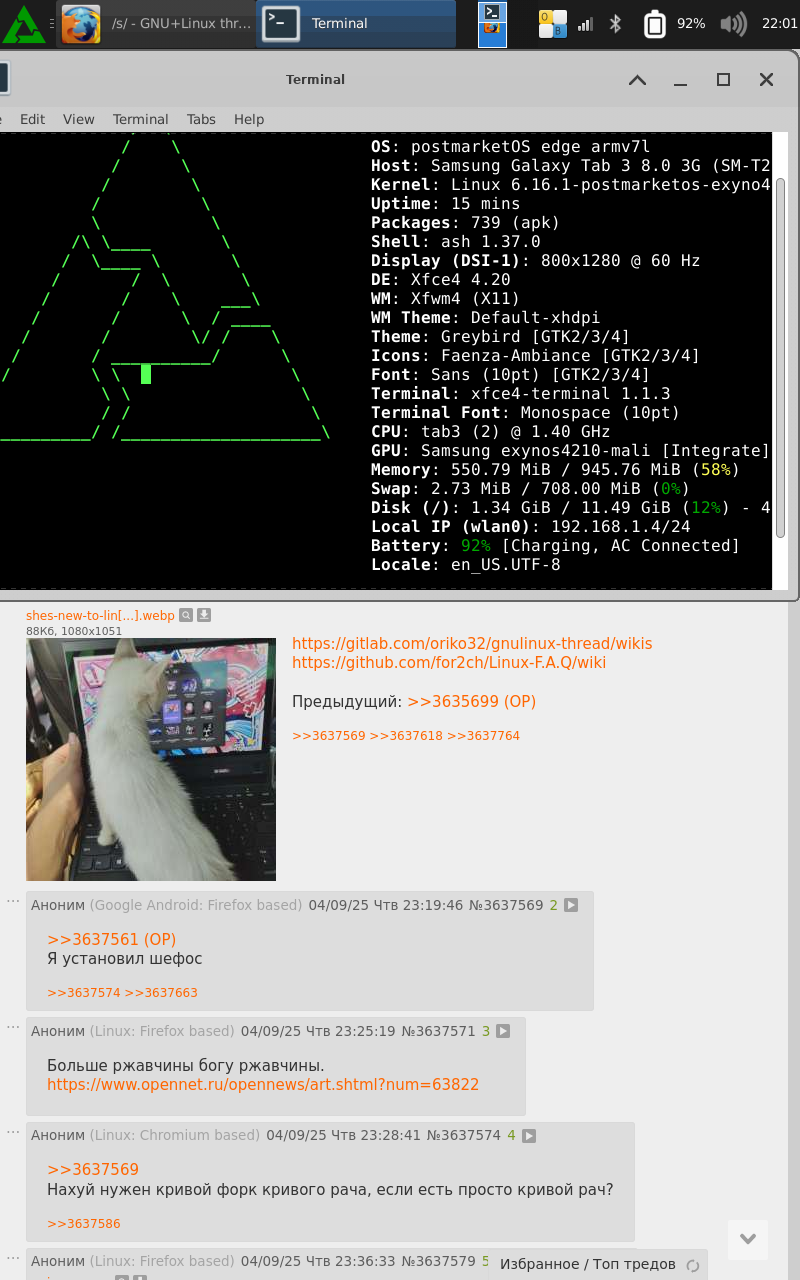 >>3639569 Пф. Деду в 93 года подогнали планшет с ведроидом, ему с кайфом, он узнал что телик не нужен на старости лет. У предков есть старый ноут с корой дуба, и он давно покрылся пылью. Матушка сидит в планшете, батя до того как отжал у деда старый планшет - сидел в телефоне. И, как бы, похуй. А в плене дистра - ставится то с чем тебе удобнее ковырять, но не все в курсе что большинсво дистрова это те же яйца, только в профиль.
