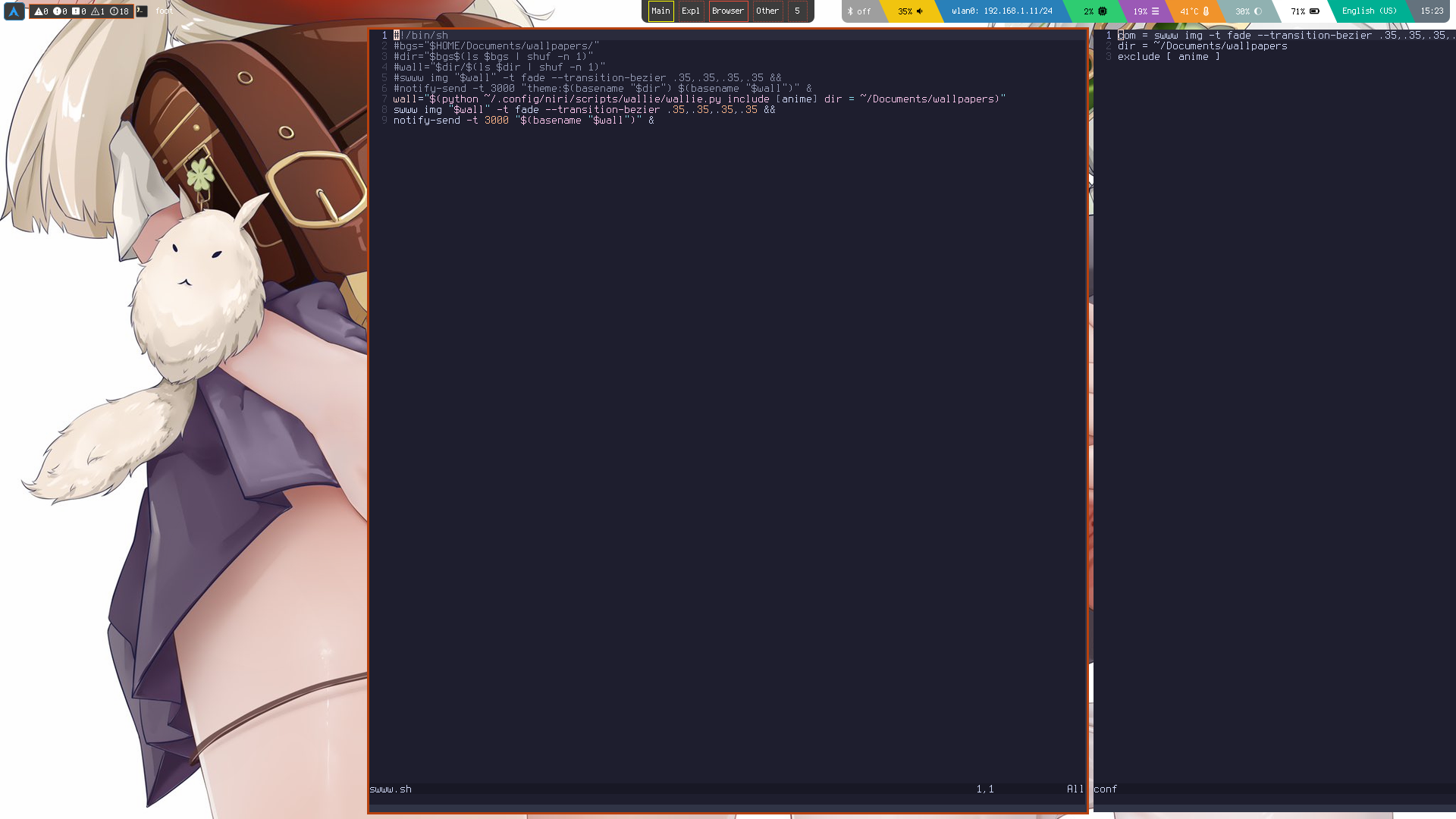 Где-нибудь кроме нирей можно настроить, чтоб отрисовку на одной видюхе и вывод изображения на всех? В нирях пишешь render-drm-device "/dev/dri/renderD128" и всё работает В свэе и ривере ставлю WLR_DRM_DEVICES=/dev/dri/card1:/dev/dri/card2 и у меня отключается встройка А ещё не понимаю как в нирях лучше пользоваться прокруткой: у меня не так много приложений, позволяющих держать их не на полную ширину экрана