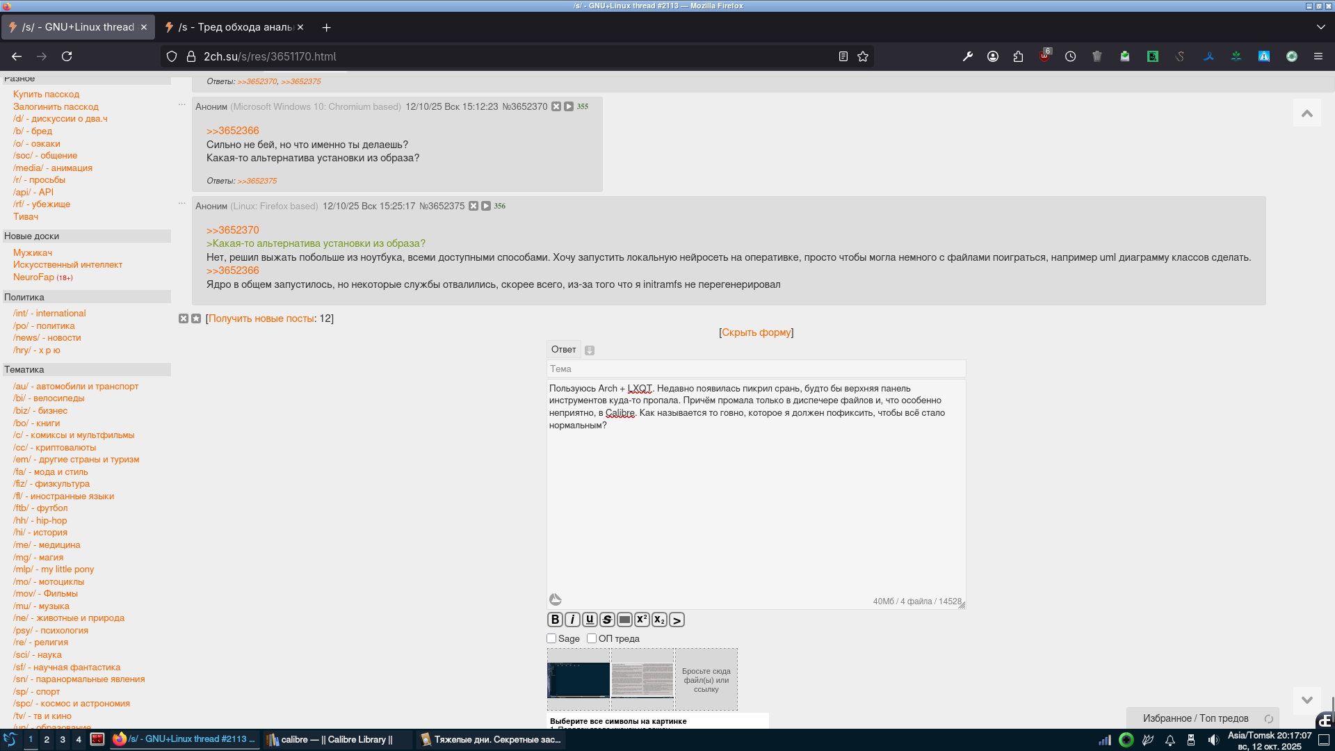 Проблемы за сегодня: Отъебнуло чет с usb, система перестала загружаться. Помогло выдернуть все девайсы и полностью вырубить питание. Иногда терминал не принимал пароль. Возможно связано с первой проблемой. При попытке скачать любую кастомизацию в кедах выдавало ошибку. При переводе ютуба на втором мониторе в фул окно, показывало черный экран вместо изображения. И все это по сути на ровном месте, ведь я нихуя не делал, кроме листания двачей и ютаба. Типа ну ебаный рот, как это говно рождается из ниоткуда? При этом есть аспекты, в которых линукс мне нравится на голову больше, чем винда. Но винда не ебет мозги в классических сценариях, если ее спецом не драконить. Здесь же почему-то ломается то, от чего вроде и не ждешь геморроя.