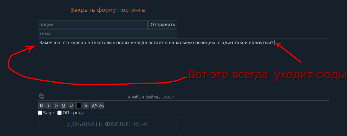 Замечаю что курсор в текстовых полях иногда встаёт в начальную позицию, я один такой ебанутый которые это замечает? И оно происходит в поисковиках, на двощах, да в общем-то везде.