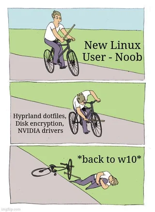 >>3652913 А нахуя тебе линукс? Ну не хватает тебе умений и знаний вот и сиди на винде таких там миллион. Я даже не буду вдаваться в мелочи аля что убунту со своим снапокалом во всем хуже как федоры так и минта (хотя минт тоже говно рядом с федорой, сам начинал с него первой системой). Твои примитивные потребности полностью винда удовлетворит.