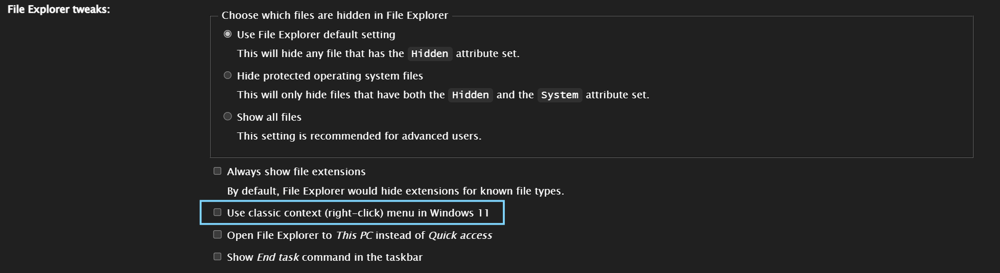 >>3662885 > нормальное меню файла Что значит твой поток сознания? Контекстное меню вернуть? Если да, то плохо искал.
