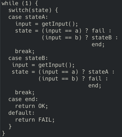 >>3669006 >Coding an FSM is more rare than the cleanup procedures, but in this cases goto really shines.
