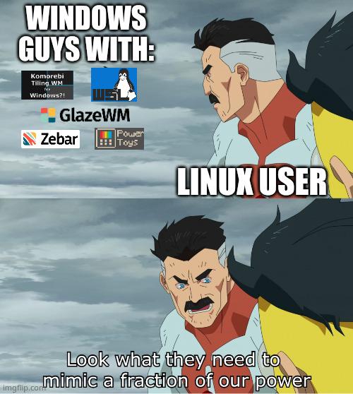 >>3668916 А чо терпеть? Нам-то и так норм. Это холопы на винде терпят унижения от мелкософта. Ради фортнайтов, кек. А мы, если прям пипец как нужна игра, которая на линуксе не пашет, можем просто дуалбут себе сделать. Так что вброс не засчитан, старайся лучше.