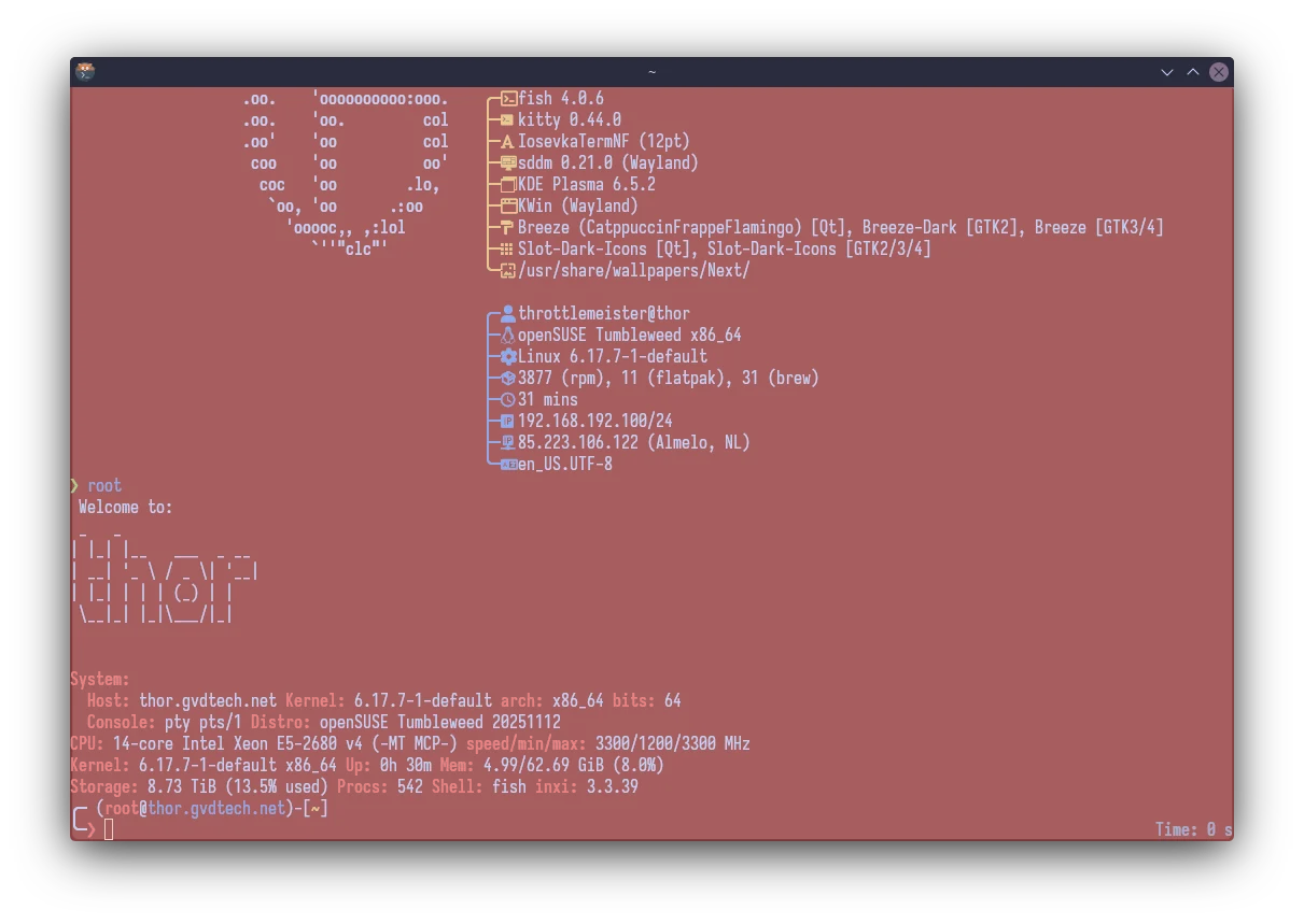 >>3676193 перезагружаю автоматом раз в две недели в пять утра воскресенья, когда zypper dup отработает по таймеру systemd. комп вообще не выключаю и даже в гибернацию не опускаю, похуй. шум в простое? не слышу вообще, у noctua пиздатые крутилки.