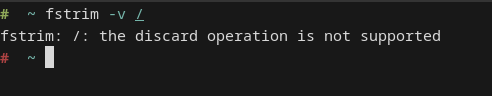 выполни sudo fstrim -v / и получишь: fstrim: /: the discard operation is not supported