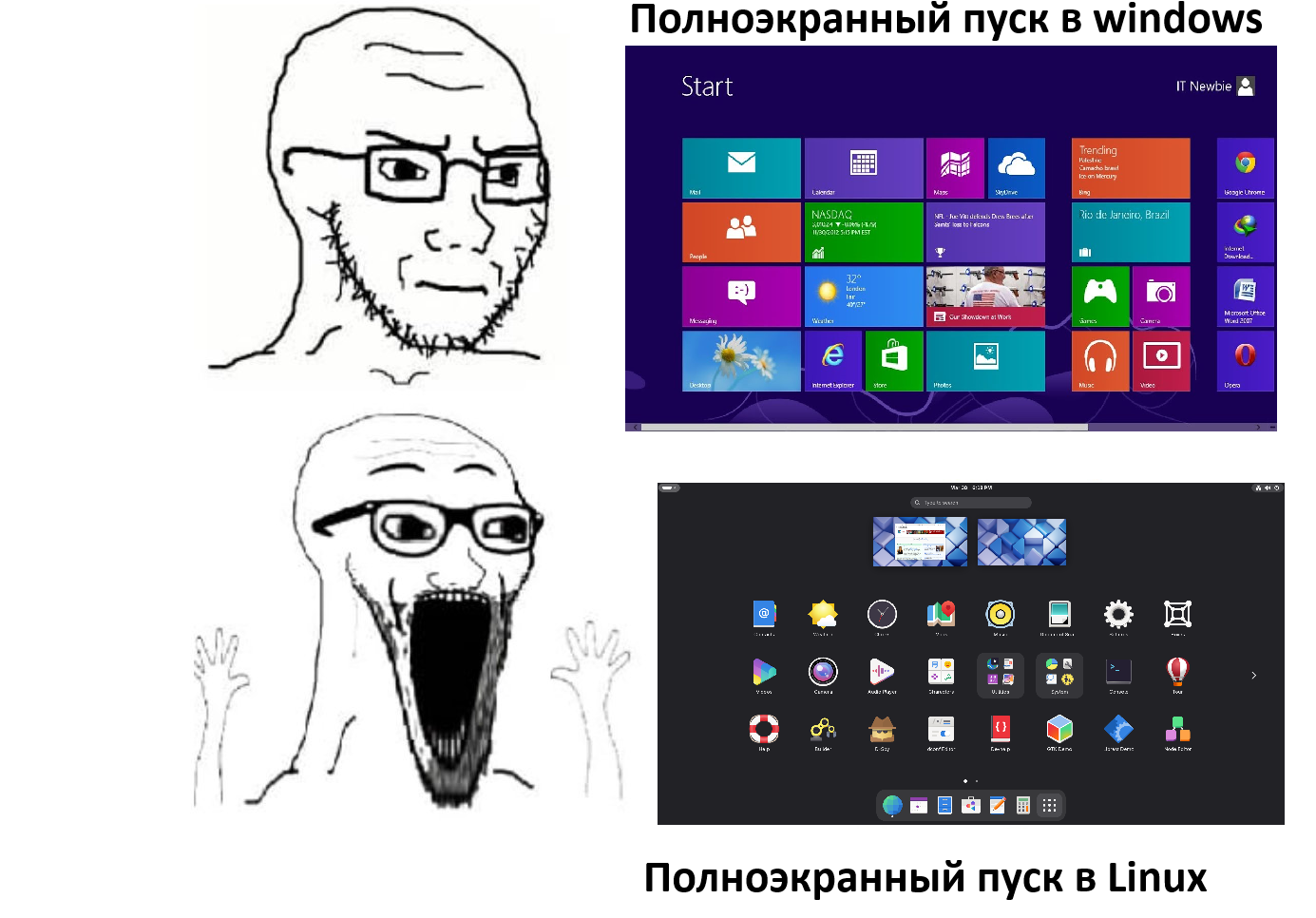 >>3684830 >Зато теперь никто не обвинит в оконном мышлении лол Нее, Братан, это так не работает. Тут есть местный вахтёр. И вот если ты используешь Кеды - то оконное мышление, а если нет - то и суда нет. Ну в Кедах интерфейс похож на офтопик. Этого достаточно. То что ты просто можешь использовать удобную для себя среду рабочего стола это не считается. Ты либо пользуешься Гномом, либо у тебя оконное мышление(сарказм).