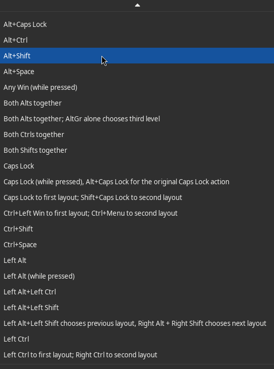 >>3686594 >Alt+shift переключение раскладки пришлось пердолить через консоль, через gnome-tweaks уже не работает, точнее работает но там другой баг всплывает, что нажимать alt-shift приходится по 2 раза Хаха лох