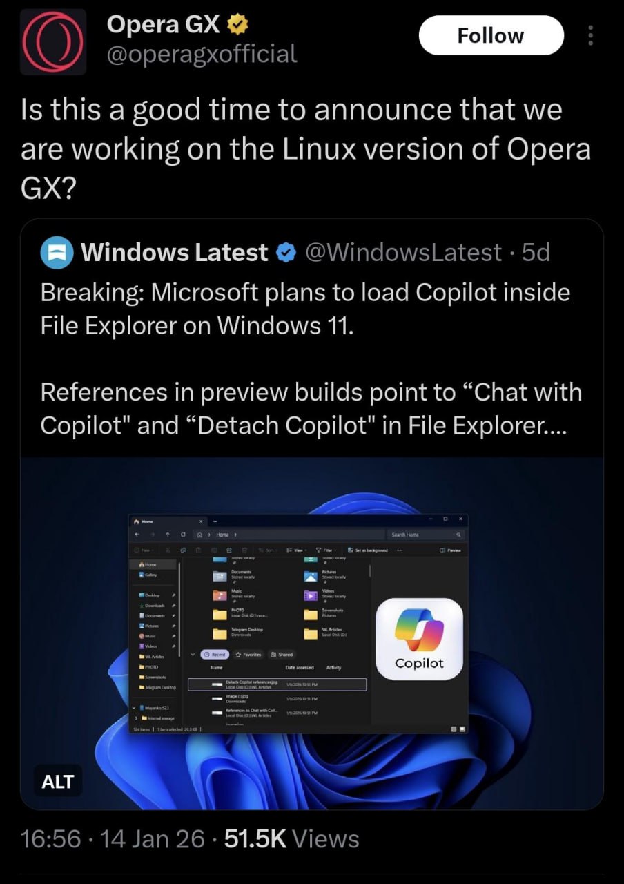 >>3688308 Интерфейс сука тормозит, контекстное меню в win11 делали дегенераты через запрос к такой же дегенеративной нейросети Иконки приложух пропадали после сна на нижней панели, ожидаешь встретить баги такого уровня в какой нибудь васяносборке линуха, но никак не в официальной винде Ебля с поиском драйверов и постоянные новости что вин11 с очередным обновлением станет прожорливее В линухе тоже есть проблемы, но здеся у меня нихуя не тормозит и к тому же она бесплатна, игры нужные мне идут не хуже чем на винде