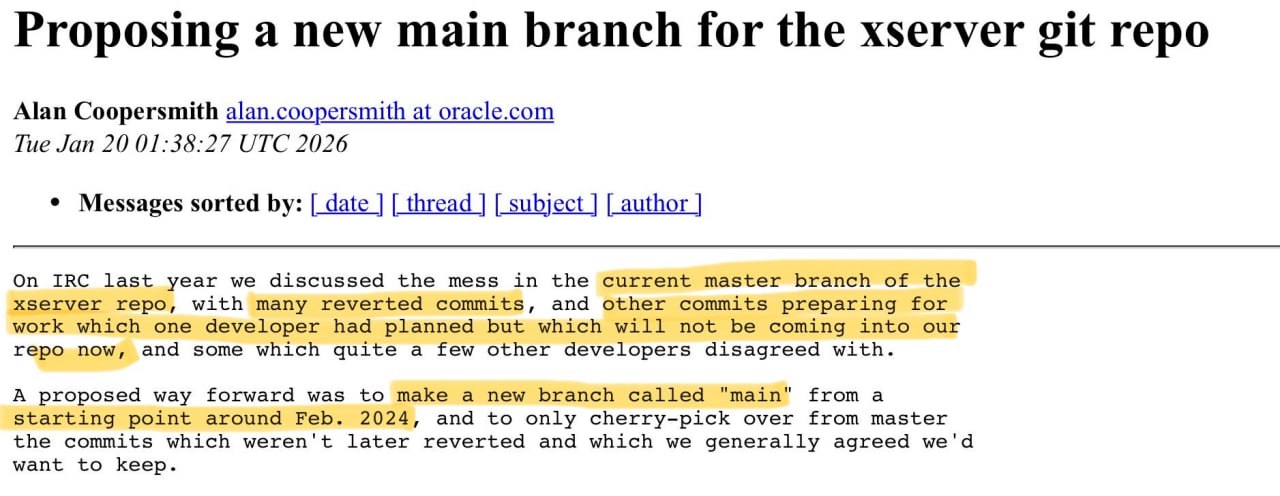 Является ли это реакцией на широкое принятие XLibre, которое, похоже, набирает популярность? Или, возможно, эта странная стратегия вызвана тем, что принятие Wayland застопорилось (они имеют примерно одинаковую долю рынка с Xorg/XLibre), несмотря на попытки навязать Wayland пользователям на протяжении нескольких лет?