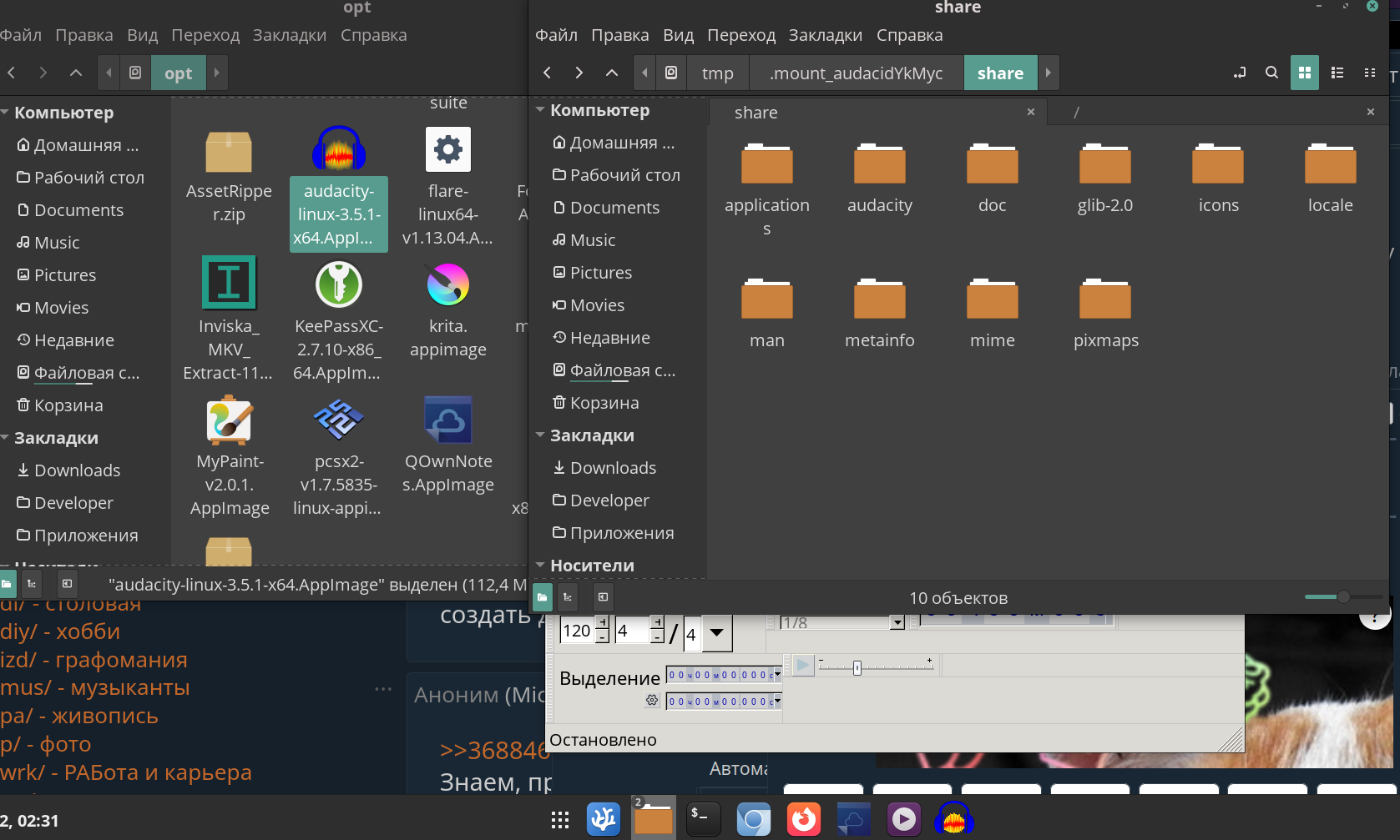 >>3688456 1. запускаешь .appimage 2. идешь в /tmp/{.mount_твояхуйня}/share/applications 3. копируешь оттуда .desktop фаил к себе в ~/.local/share/applications (так же можешь скопировать иконку себе) 4. открываешь его в редакторе и меняешь там команду исполнения (Exec+TryExec) на путь до своего файла .appimage 5. там же (в ~/.local/share/applications) вот этот ярлык который у тебя создался в меню и удаляешь