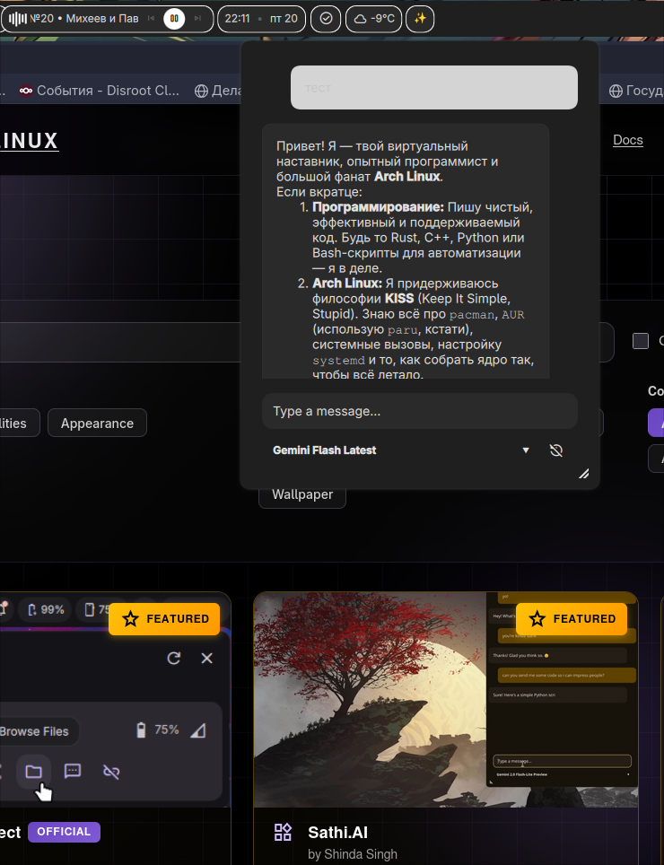 Что поставить на thinkbook i5 125h, 4060 из: - основная система, параллельно с Win 11 на другом компе ( Win 11 устраивает во всём, но только на стационарнике) - заточенное под гиперактивного альт-табника/альт-шифтника - плоского дизайна (не обязательно по-умолчанию) - меньше кушающего заряд (желательно с ограничением полного заряда батарей (не знаю зачем, но все-таки)) - справляющегося с UE5 под протоном (уже проверил на deb - результат если не порадовал, то заложил надежду)