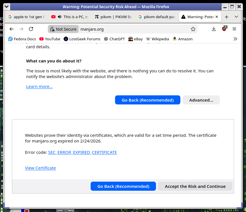 >>3697380 >Просроченные ключи шифрования (Keyring) Какой ужас, это ведь надо 2 команды ввести, чтобы решить эту проблему. Срочно нужно сносить арч и ставить хуйдору.