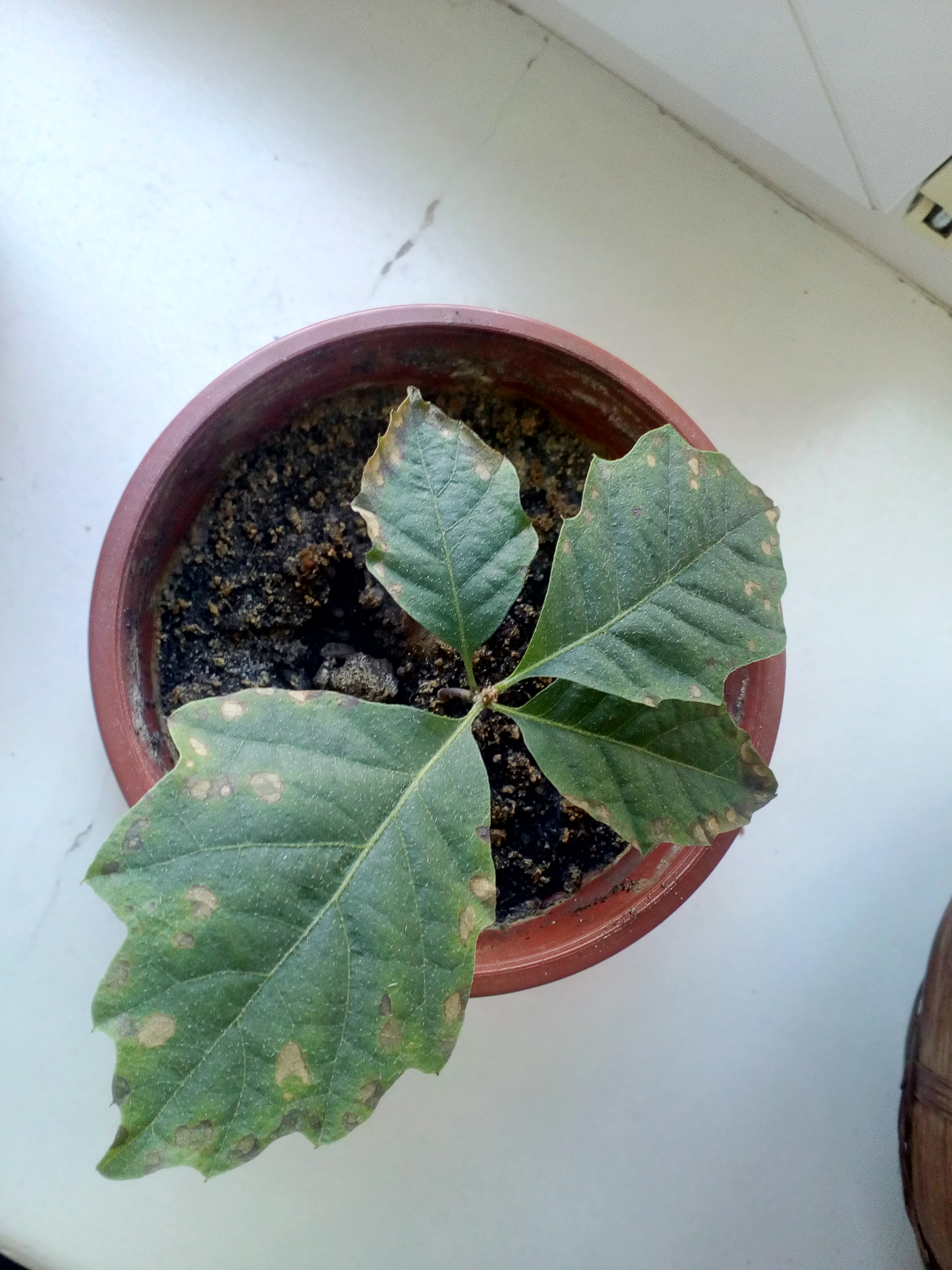 В конце марта нашёл жёлудь. Посадил его в горшок и через месяц появился росток. Всё было красиво: большие листья и рост стебля. Сейчас рост стебля не заметен (ну, это понятно, они ведь десятки лет растут), а на листьях появились пятна. Уже недели 2-3 он в таком состоянии. В чём может быть проблема? В сильном увлажнении почвы? Ибо я ни цветка за свою жизнь не посадил, а тут вот решил посадить дуб. Поливал раз в 3 дня по +-50мл, но земля просыхать не успевала. Сейчас прекратил полив до осыхания земли. Прошу помочь. Не хочу, чтоб он погиб.