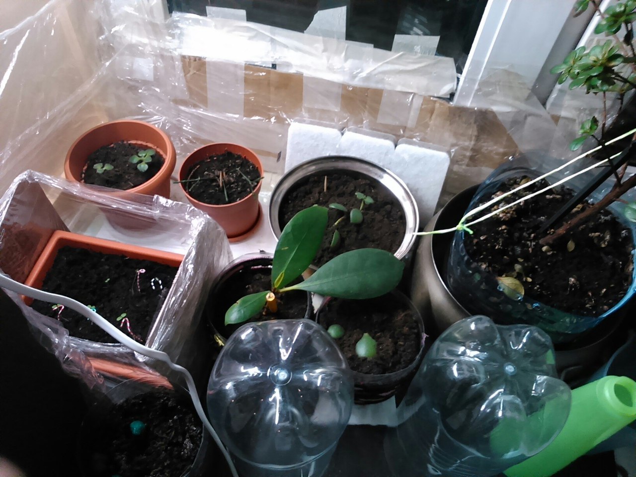 Выращиваю кучу всякой срани: лимоны, гранаты, киви, плющ, аспарагус, азалия, фикусы, хатиора, кипарисовик и прочее. И иногда пытаюсь проращивать что-то ещё. Буду периодически пилить сюда фото и немного о процессе про разные растение, заодно фиксировать их изменения. Может и интересно кому будет. На фото мои плантации.