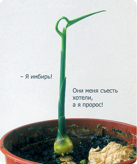 Решил я сделать чай с имбирем, залезаю в коробку, а имбирь так ожил резко. Теперь не могу его съесть. Не подающего признаки жизни собрата у него на глазах могу, а его самого нет. Дал имя Бырь.