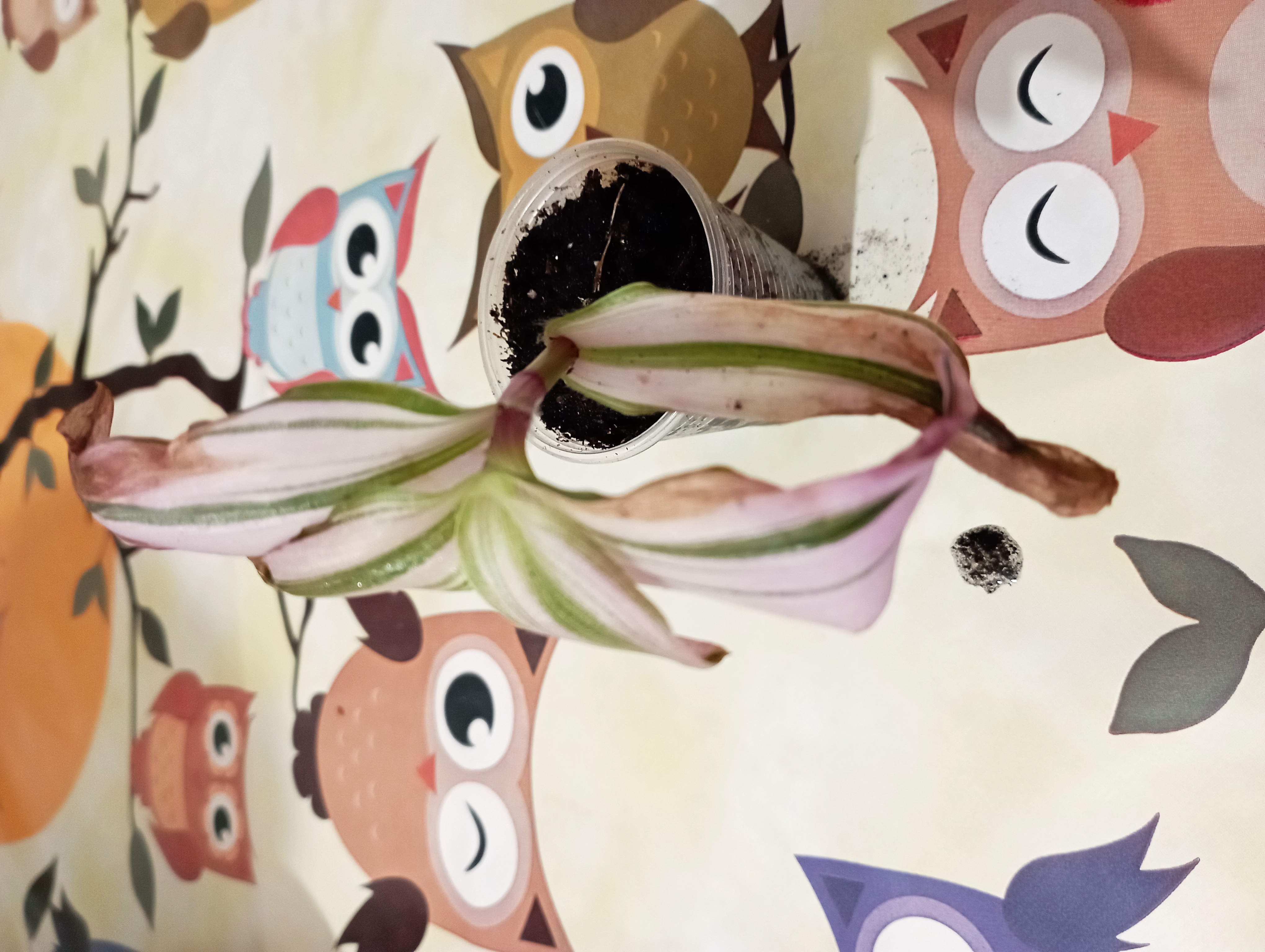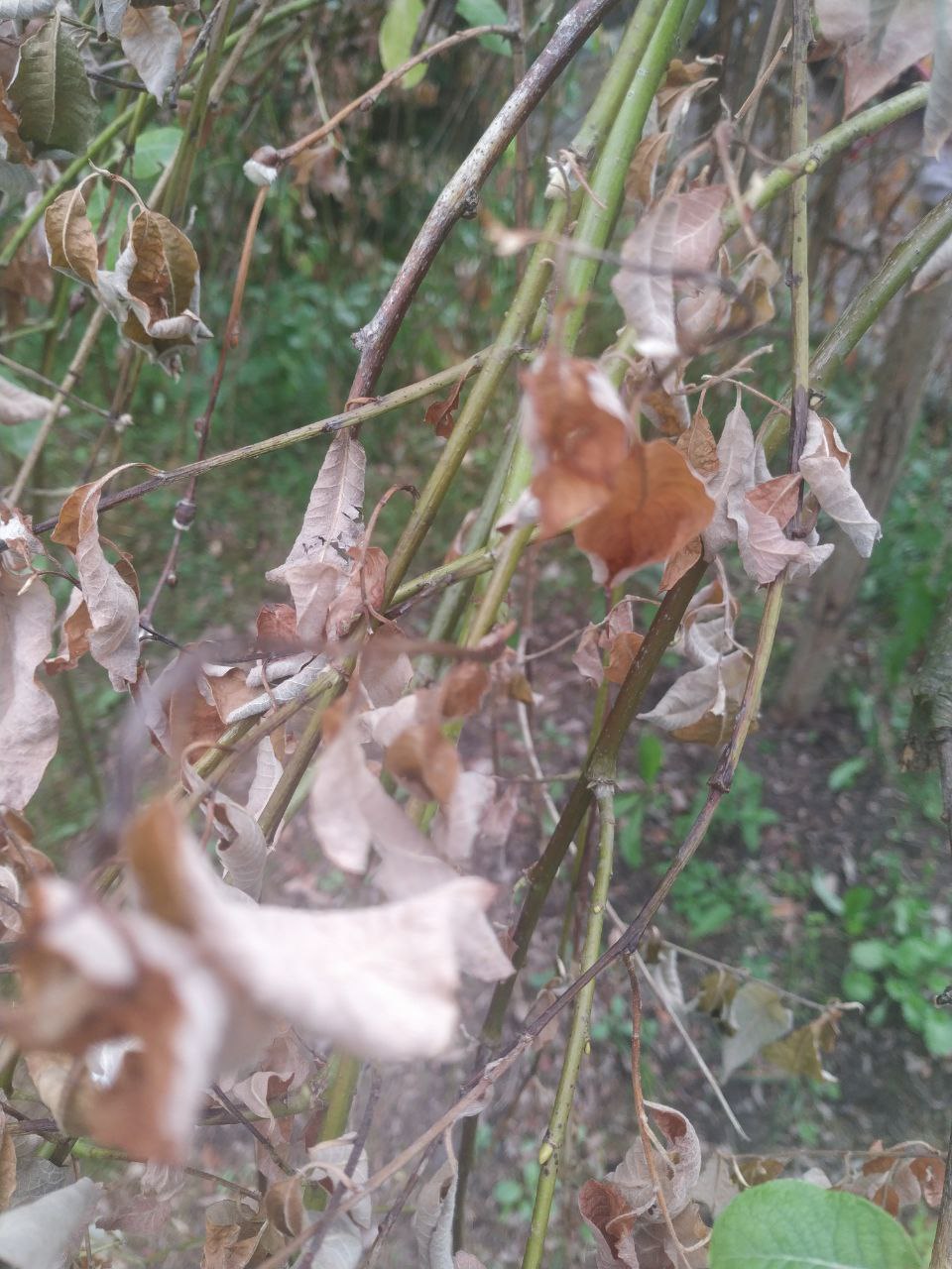 Цветок с древообразным стволом, обладающий тёмно-зелеными широкими и плоскими листьями теряет их. Они просто падают, как будто их кто-то отрезает ножом для бумаги. Эта ситуация возможна как реакция цветка на тьму или холод, или кто-то рили отрезает их ножом?
