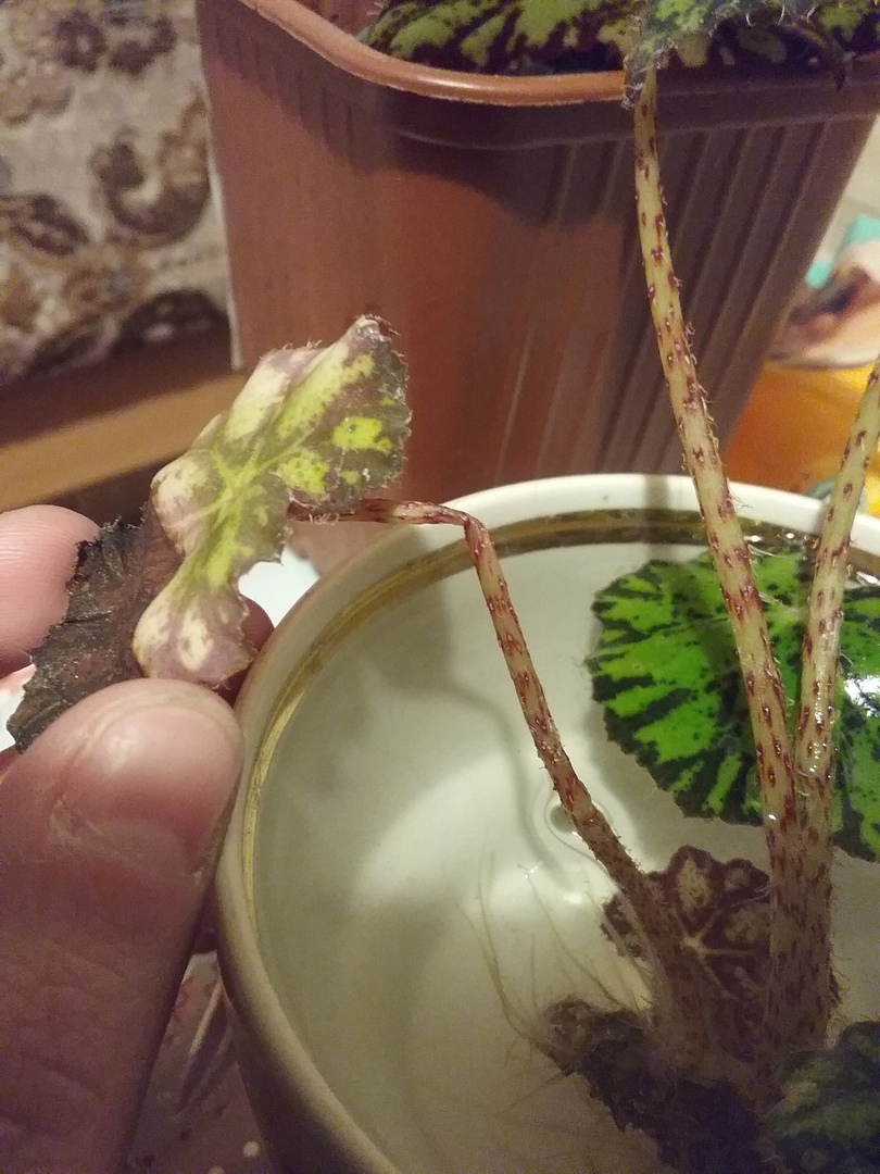Я не нашёл какой-нибудь общий тред для вопросов, поэтому создал новый. Такая история: я нуб в ухаживании за растениями, все попытки оканчивались их скорой гибелью к сожалению. Но недавно, сестра принесла с работы одного красавчика. Как мы выяснили, это скорее всего бегония тигровая. Какое-то время с 19 марта он стоял просто в воде пока не пустил корни. Похоже, он начал выживать, даже пустил маленький листик. Когда корни разрослись, мы его пересадили 11 апреля (использовали питательный грунт цветочный фаско), и вроде всё шло хорошо, он даже пустил новый лист. Но сегодня заметил, что самые молодые листья потемнели и пожухли. Что с ним? У нас нет никакого опыта, поэтому, можно объяснить как спасти и ухаживать за ним, словно мы тупые дети? Первое фото это ещё он в воде, а вот второе сегодня этот маленький цветочек, который появился буквально вчера-позавчера. Третье тоже до пересадки