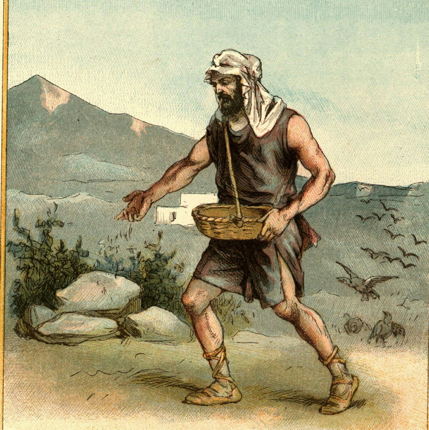 Христос многому учил народ в притчах, говоря им: – Послушайте, один человек вышел в поле сеять. Когда он разбрасывал семена, то несколько зерен упало у самой дороги. Прилетели птицы и склевали их. Другие зерна упали на каменистую почву, где было мало земли. Они быстро проросли, потому что земля у них была неглубока, но когда взошло солнце, оно опалило ростки, и те увяли и засохли, так как у них не было глубоких корней. Другие упали в терновник, который разросся, заглушил их, и семена не взошли. Но семена, которые упали на плодородную почву, взошли, выросли и дали урожай, принеся в тридцать, а то и в шестьдесят, и даже во сто крат больше, чем было посеяно!