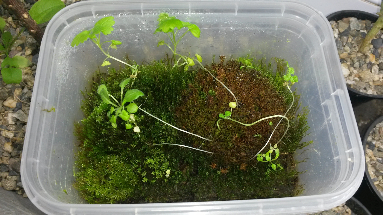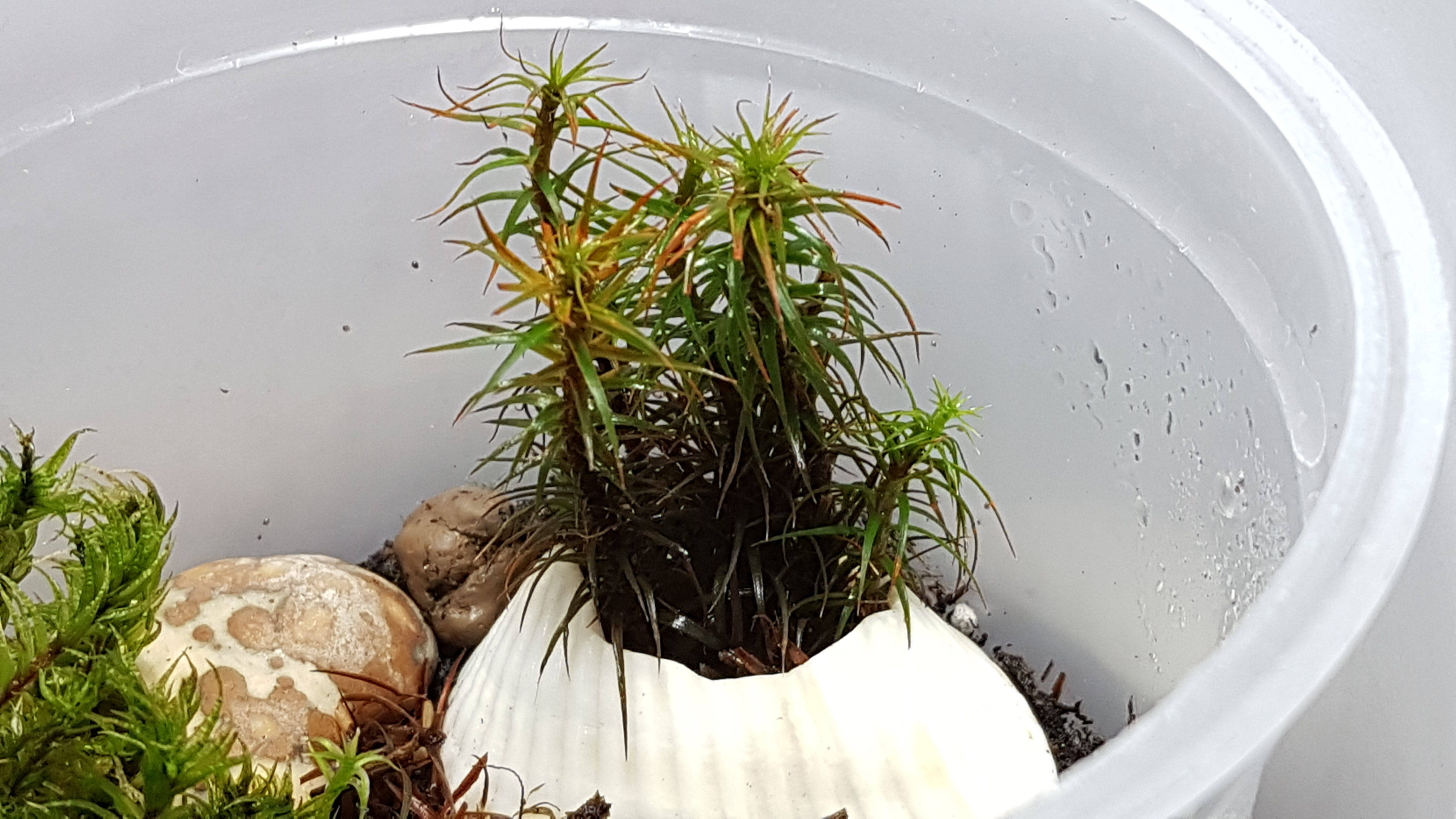 Нашел старую попытку. Суть в том, что в закрытом контейнере на Солнце мох растет и радуется, но на обычном квартирном воздухе он не проживет - слишком сухо