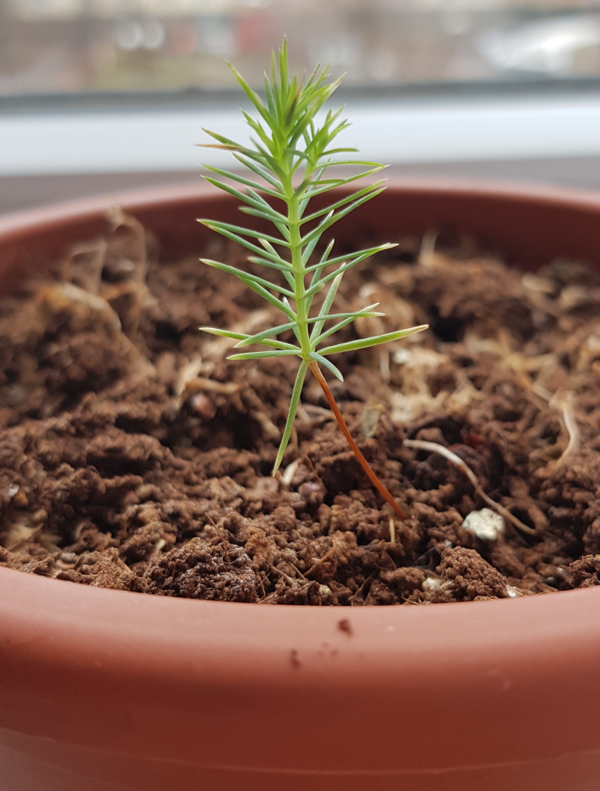 Господа друиды, летом растеребил шишку и посадил семена (вроде сосны), подскажите, чего может не хватать моей малышке? Кончики хвои желтеют, поливаю умерено.