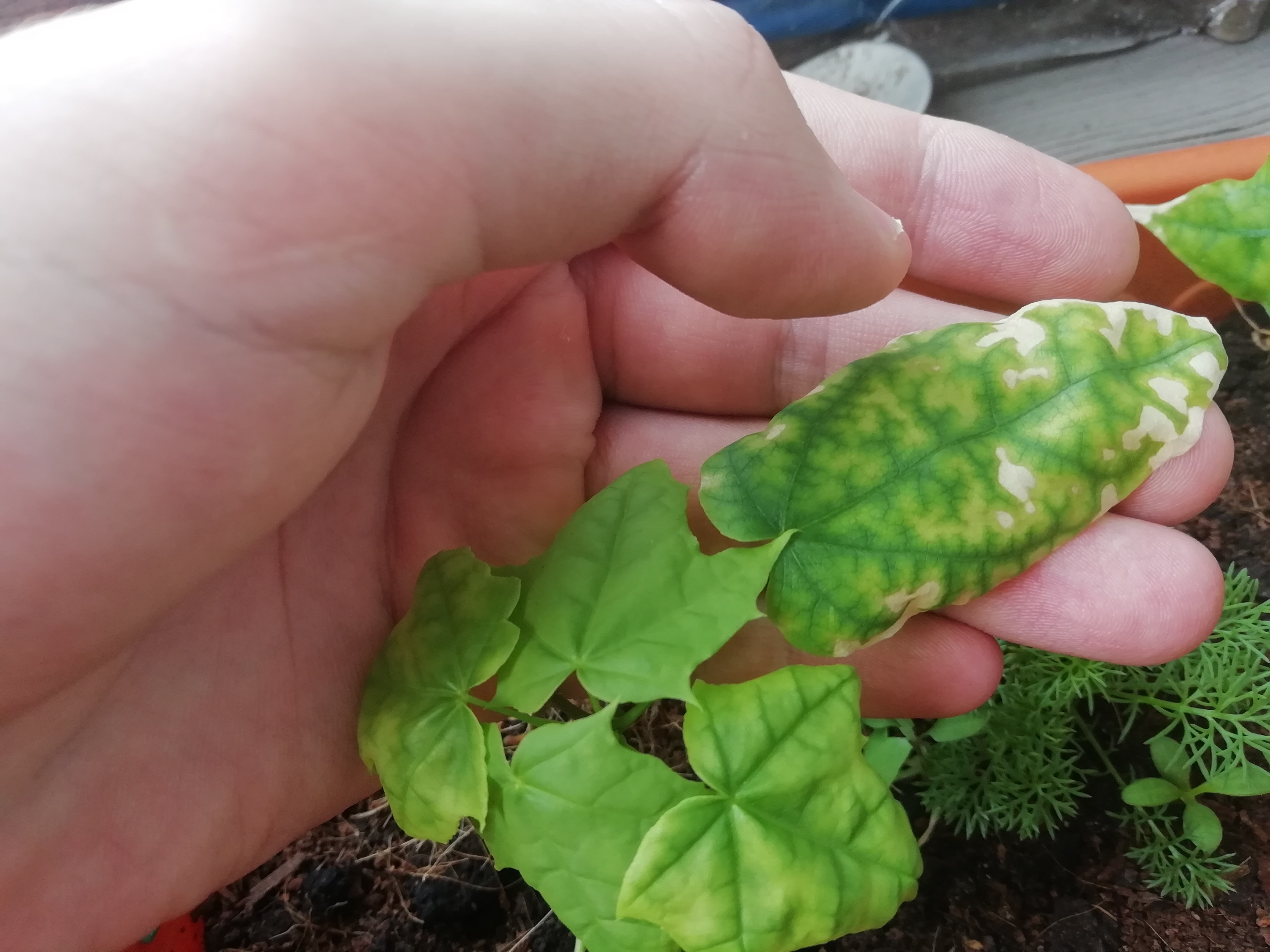 В общем я бы на твоем месте пересадил в грунт. Либо начал лить удобрения с преобладающим азотом. Смотреть на свою воду, не сильно ли она щелочная. Алсо удобрения и надо разводить грамм на литр грубо говоря.