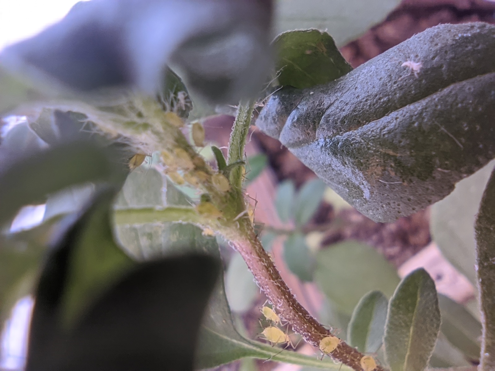 Выращиваю какое-то растение, недавно заметил, что там поселились жуки. Очень мелкие, висят как виноград. Перебрались и на соседние растения. Повсюду. Что это и как от них избавиться? Полил их спиртом для начала, не помогло.