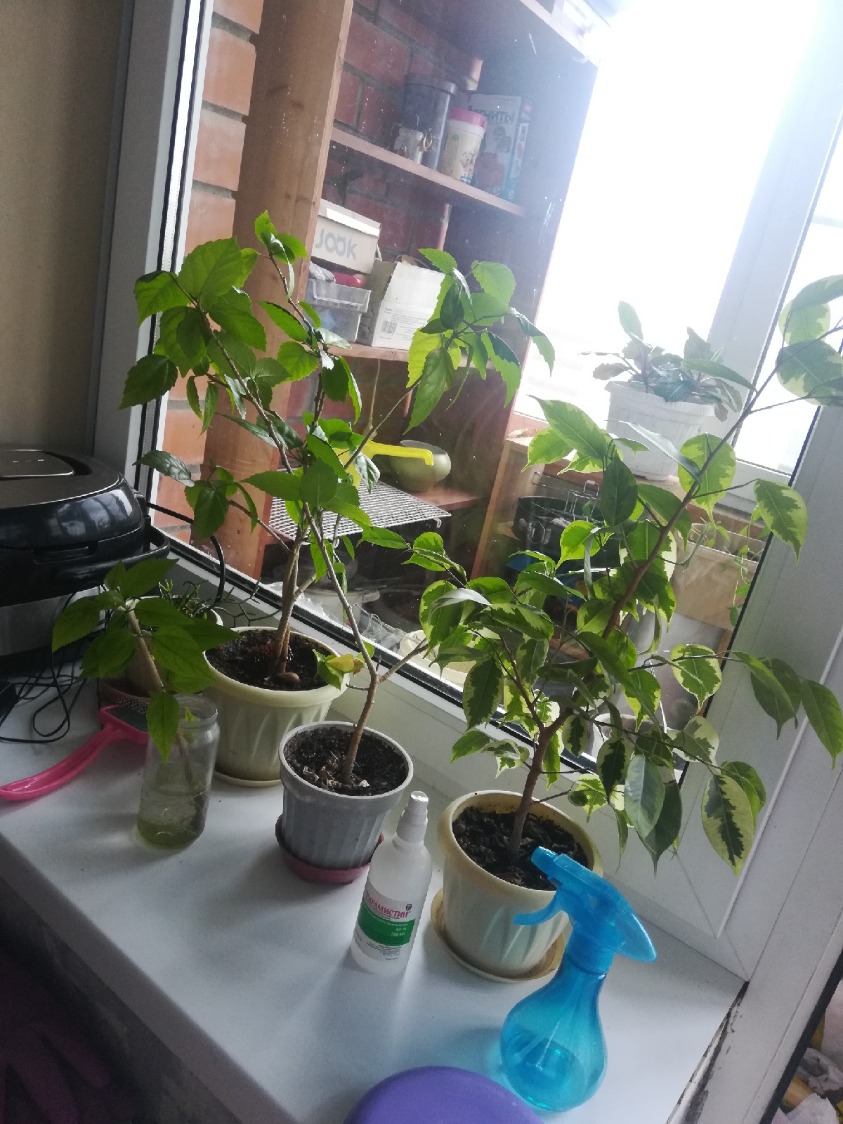 Гибискусы и фикусы вроде неплохо поживают. Старому молочаю, кажется, пизда, он кривой и уродливый, но породил еще 3, вполне бодрых. Может его убить нахуй?