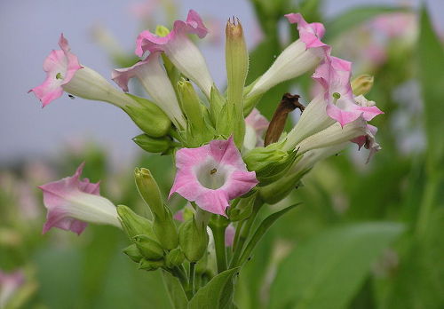 Кстати, цветы у табака тот в точь как на пике - >>2629 Карочи они сначал как бы зелной почкой, потом из нее врастает зеленый венчик(похож на махорку), потом венчик удлиняется, желтеет, потом еще больше удлиняется и белеет, потом распускается белый венчик и через полдня становится розовым.