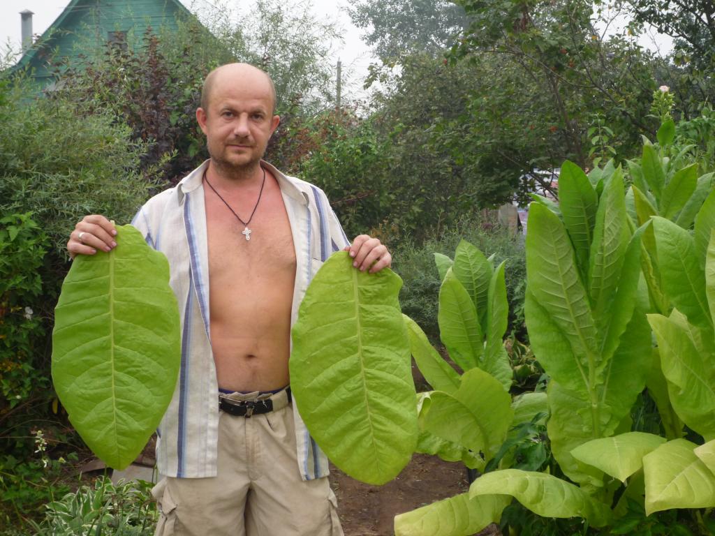 Как выращивал? Случайно зашел в феврале в магазин и наткнулся на семена табака. Семена продаются в определенный сезон - опоздаешь, в мае-июне уже не купишь. Купил 4-литровые горшки(лучше еще большего объема, но я жадный), грунт для помидоров. Сначала семена прорастил в отдельном стаканчике. Как? А просто полил землю в стакане, боль-мень равномерно рассыпал с десяток семян, стакан прикрыл полиэтиленовой пленкой и на подоконник. Через 5 дней появились ростки. Когда ростки стали чуть бьше(листья с копейку) рассадил их по горшкам.
