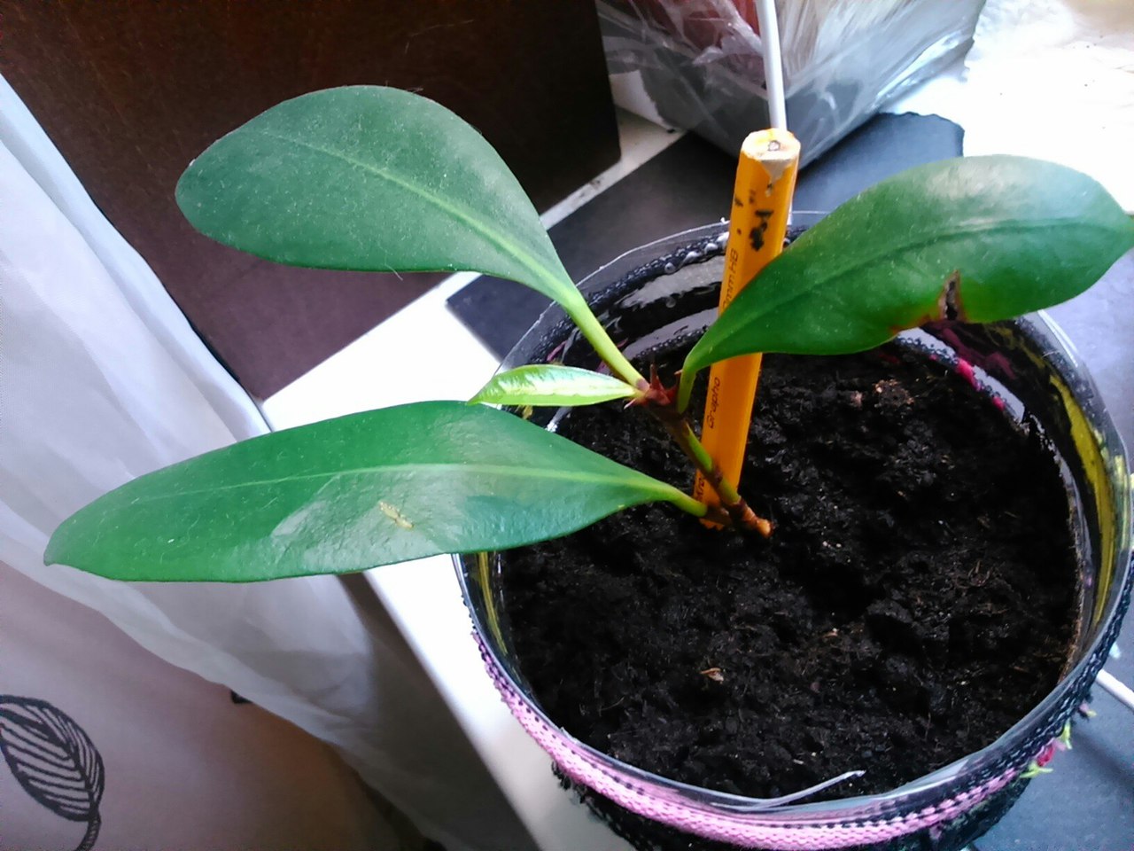 Продолжая тему спизженного. На общей жилплощади в какой-то момент появились два дерева почти с меня ростом, а увидел впервые их я бухой, поэтому неплохо так впечатлился. Решив заиметь по куску таких пиздатых деревьев, я срезал по черенку с каждого, воткнул по горшкам и забил до утра. Протрезвев я внезапно обнаружил, что охуенные деревья на самом деле просто фикусы переростки, но так как те уже были посажены, решил оставить. Черенок с первого пика долго ничего не делал, даже не умирал, а тут вдруг за неделю отрастил новый лист, и похоже не собирается останавливаться. А на втором пике сначала была весёлая пальма с 4 листьями, но она начала быстро сохнуть, проебала половину кроны, и была посажена на пару недель в воду, корни вроде появились, теперь опять в землю хуйнул.