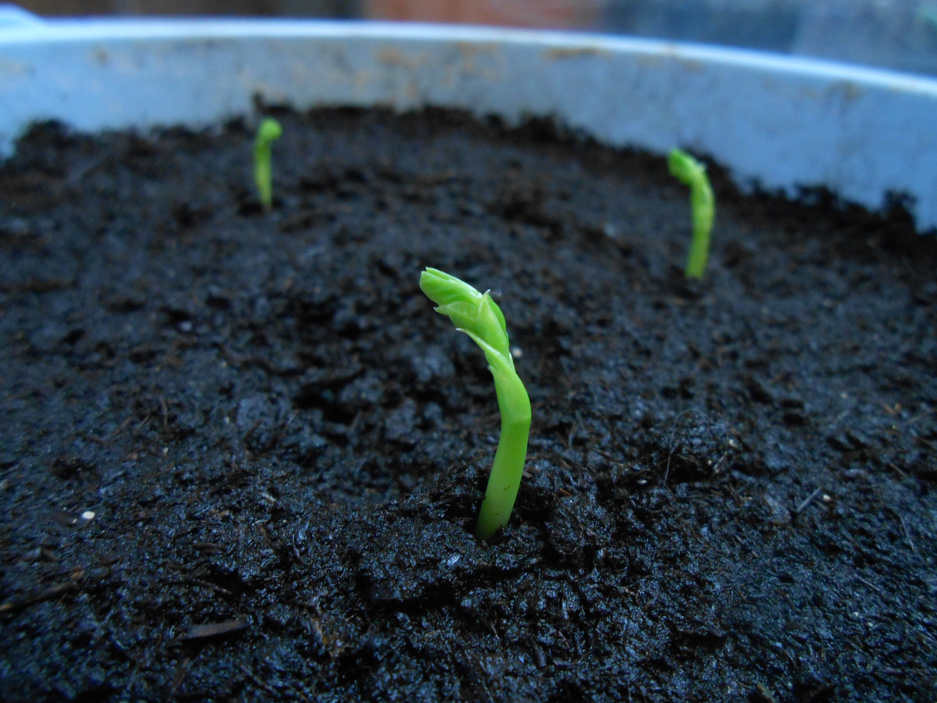 Аспарагус пирамидальный так и не хочет восходить, сначала замочил на пару недель и сидели на батарее, потом посадил как проклюнулись, прошло две недели, стоит ждать или я накосоебил?