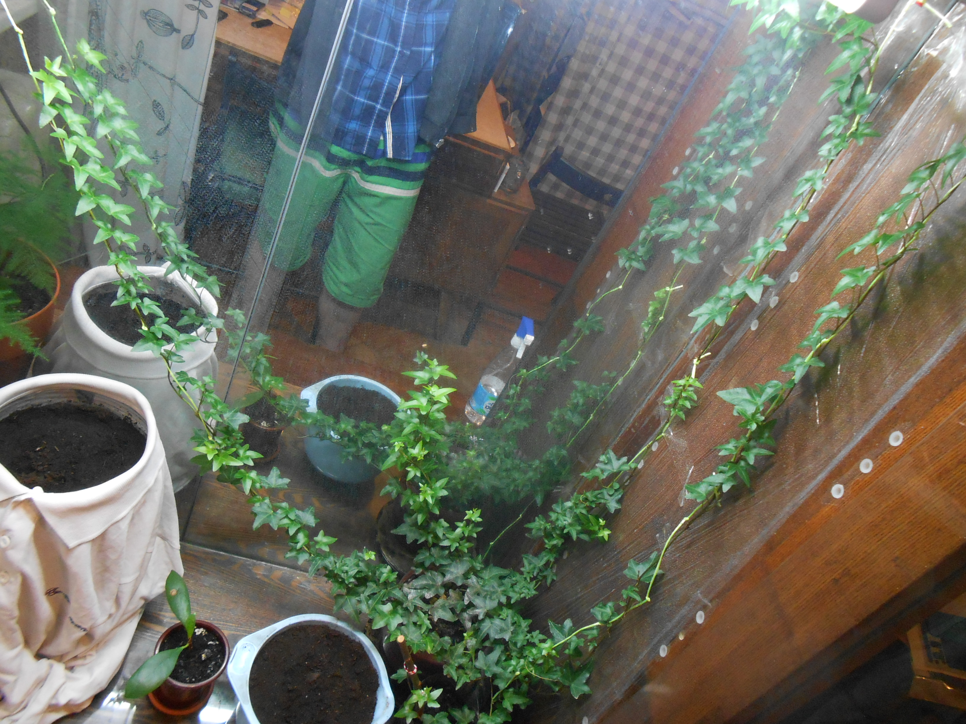 Лоза плюща зачем-то вросла в мёртвый кусок самой себя. Специально потыкал, чтобы убедиться, что это не засохший отросток. Нихуя, оно держится там и прочно.