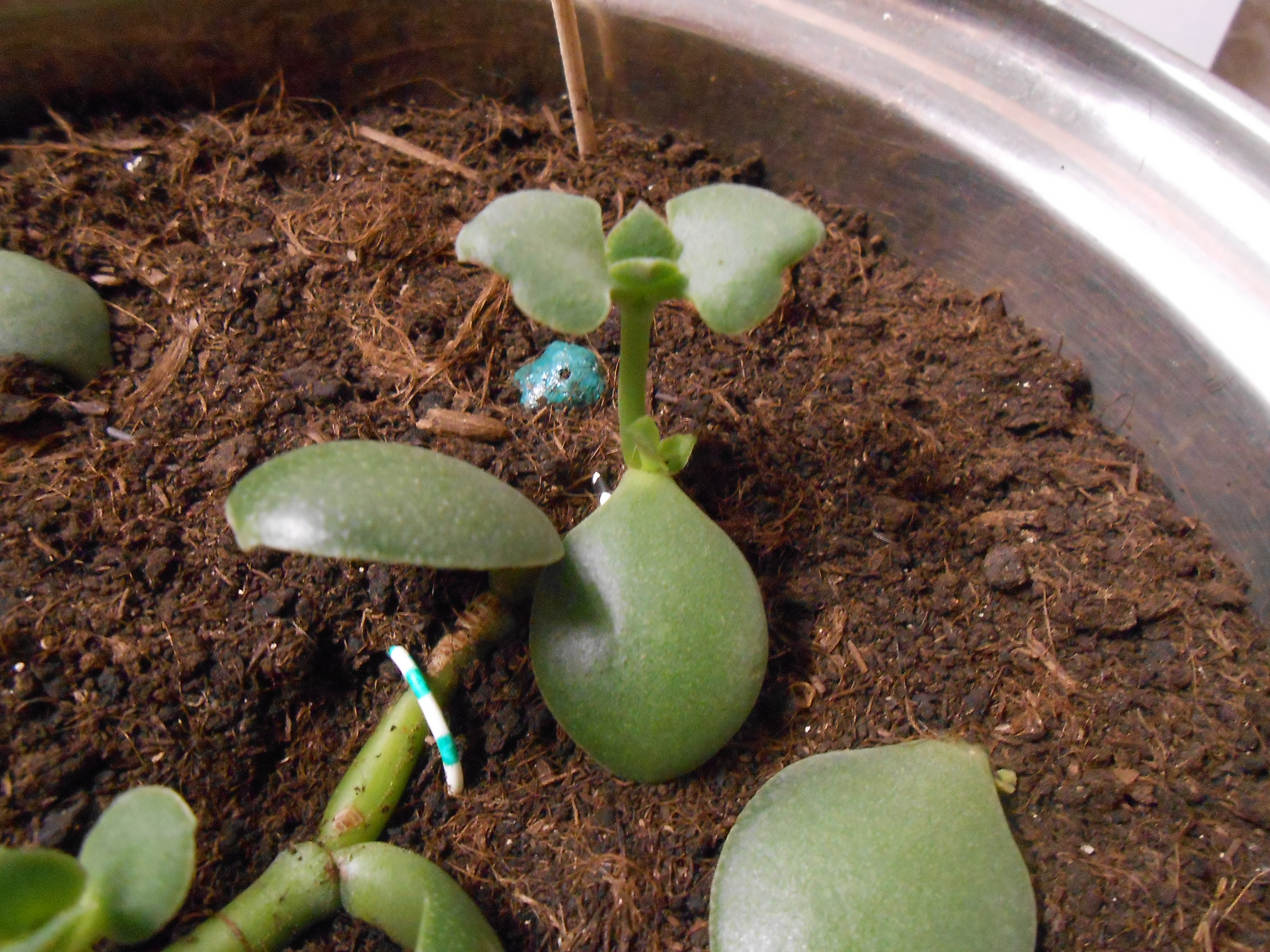 >>583 (OP) Второе фото в оп-посте, верхний левый угол, в горшке укореняются два суккулета. Слева на фото тут один из них, второй был примерно такой же, но внезапно развалился на запчасти, пара из которых укоренилась в соседнем горшке.