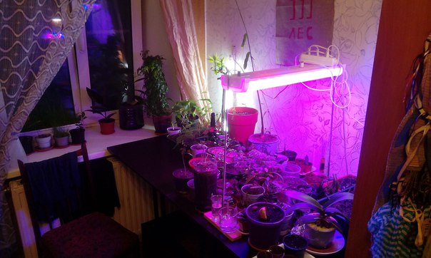 А ещё со вчерашнего дня на одном подоконнике у меня стоит светодиодное нечто под названием СолнцеДар 20Д или как-то так. Теперь треть комнаты обдаёт кислотно-розовым, а за шторами горят красные и синие диоды, хоть жри колёса и устраивай рейв. До сих пор не могу привыкнуть, что все предметы на столе теперь отбрасывают зелёную тень.