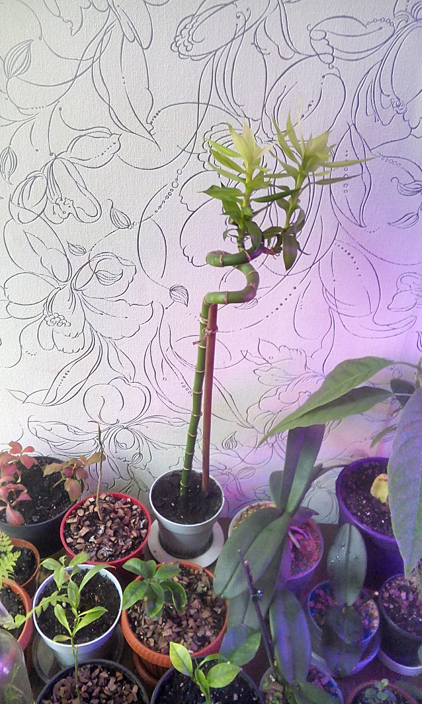 У Опа пока не происходит ничего интересного. Всё потихоньку растёт: соорудил гороху подпорку, вроде растёт, но выглядит как-то вяленько. Пересадил кипарисовик наконец из родного горшка. Ростки яблонь вроде выживают, один только засох. На арбузы я таки окончательно забил болтец, и они всё так же стоят, не растут и не умирают. Фикус закончил с одним листом и начал новый. В воскресенье как обычно наделаю фото и выложу тут.