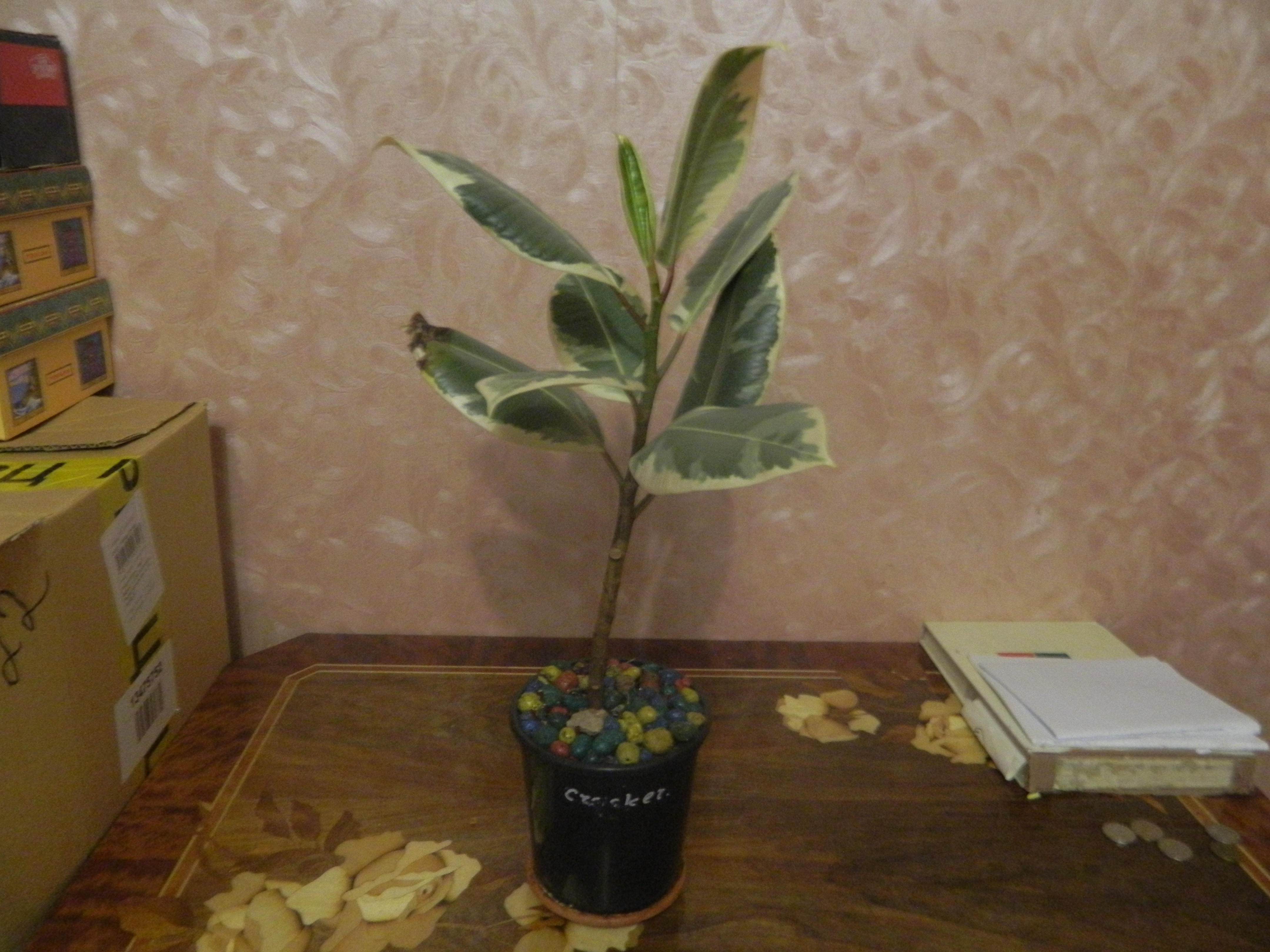 Вот эти два фикуса были куплены почти одновременно и одного размера, но одноцветный явно даёт химере пососать в скорости роста.