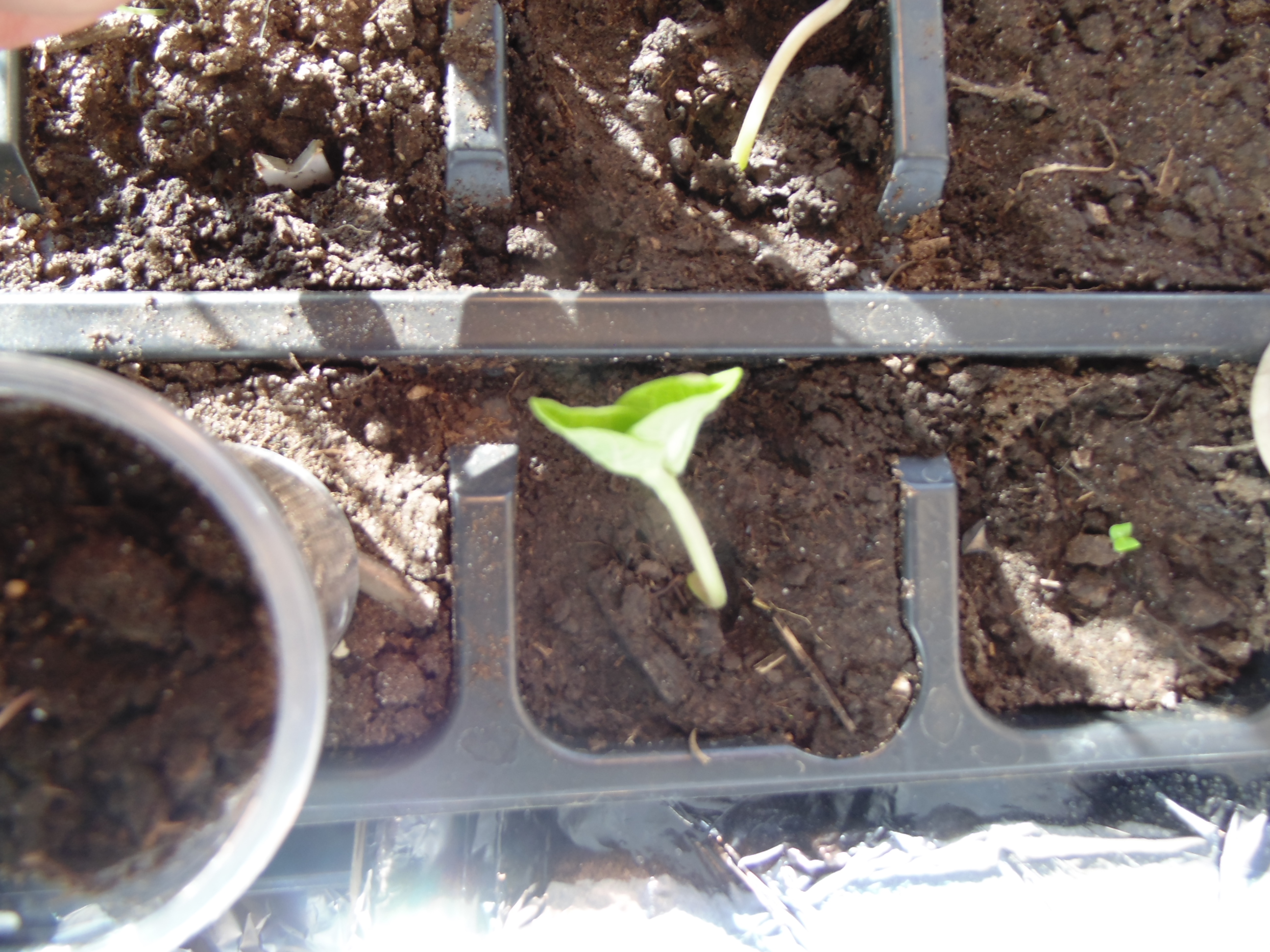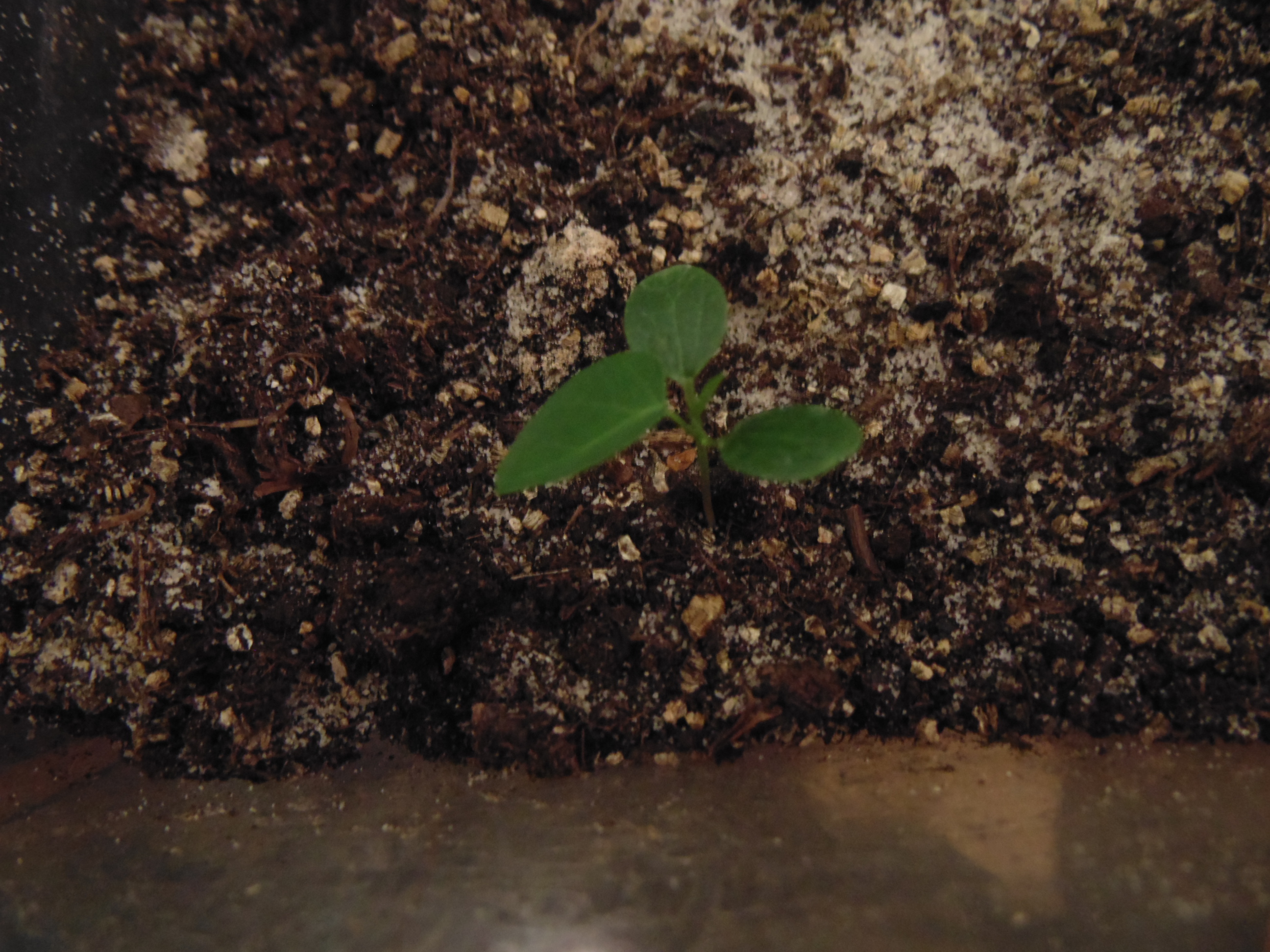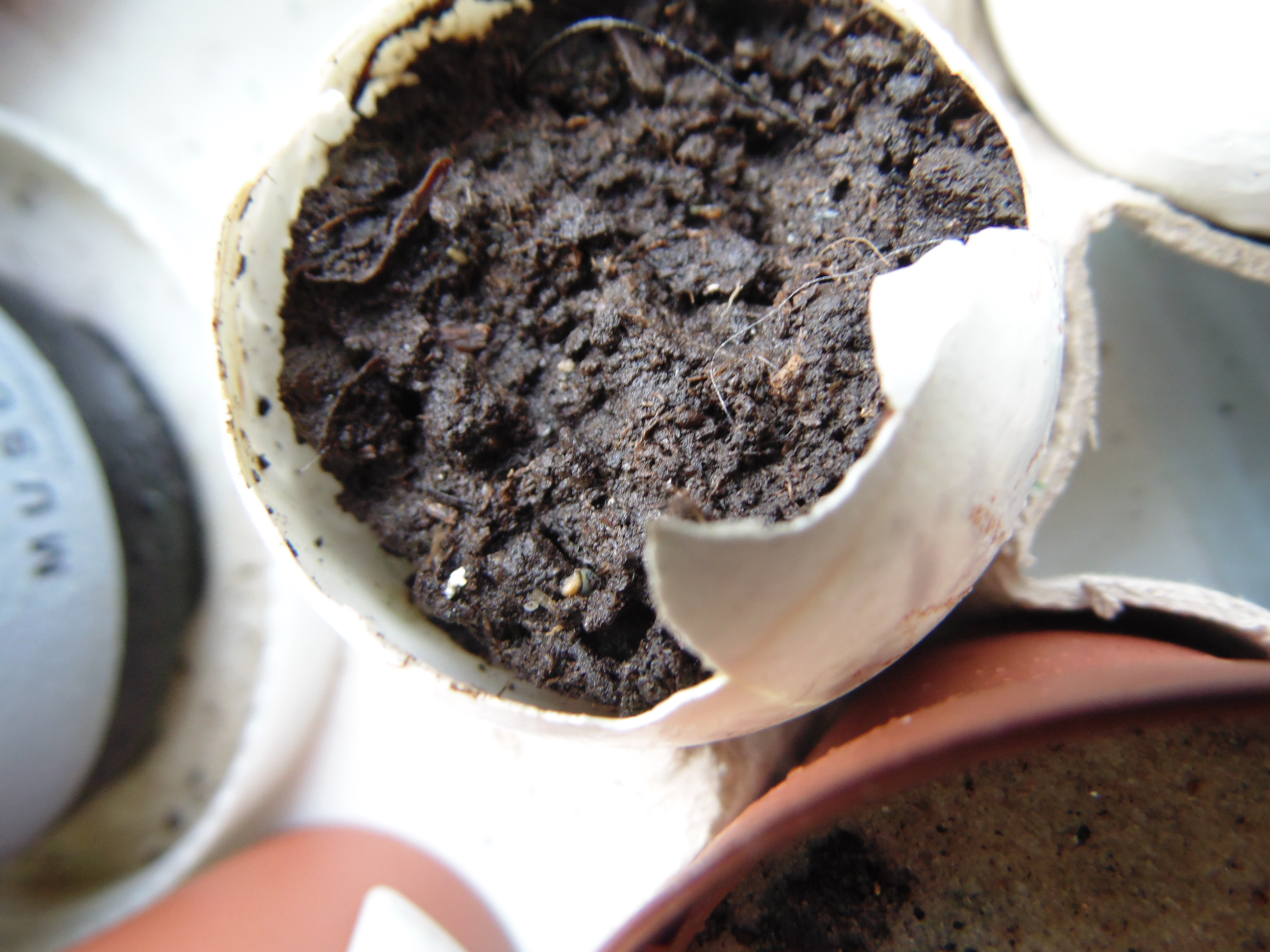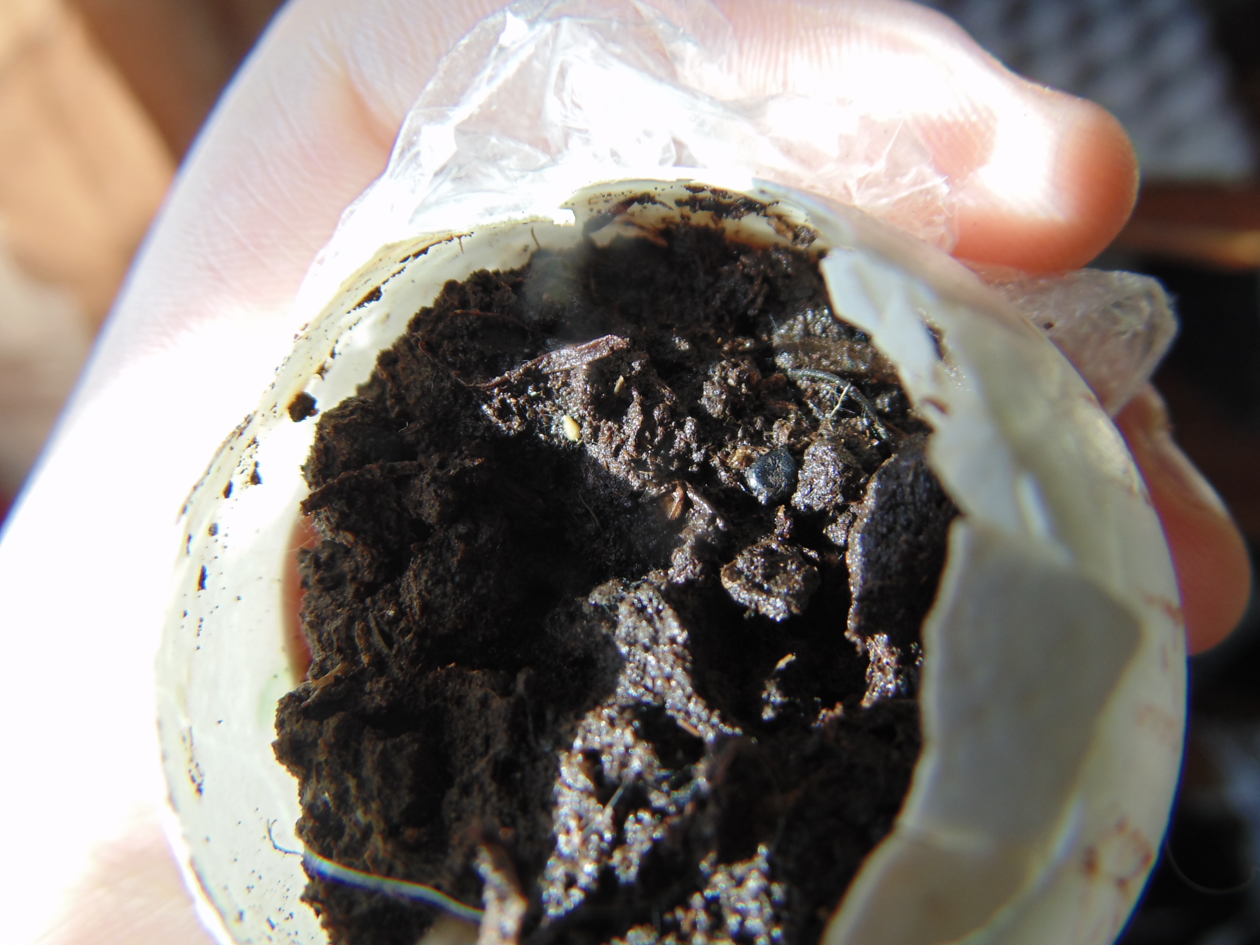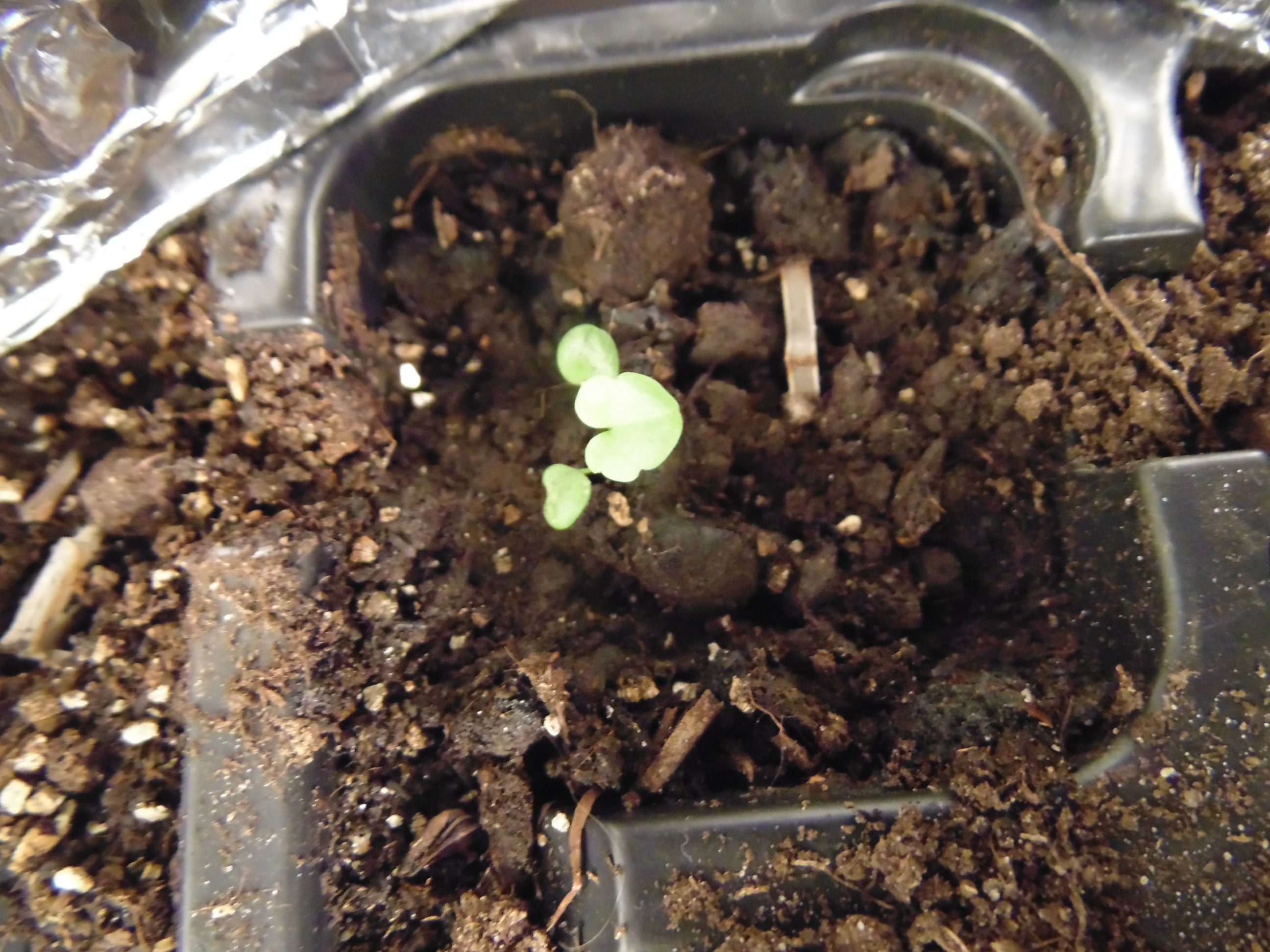 Заметил только когда постил. "Да что-то же взошло!" Учитывая, что грунт попался дерьмовый, это может быть и не земляника. Но вроде и стебель прозрасный и листья по размеру семки. Расковырял скорлупу, поставил на солнышко.
