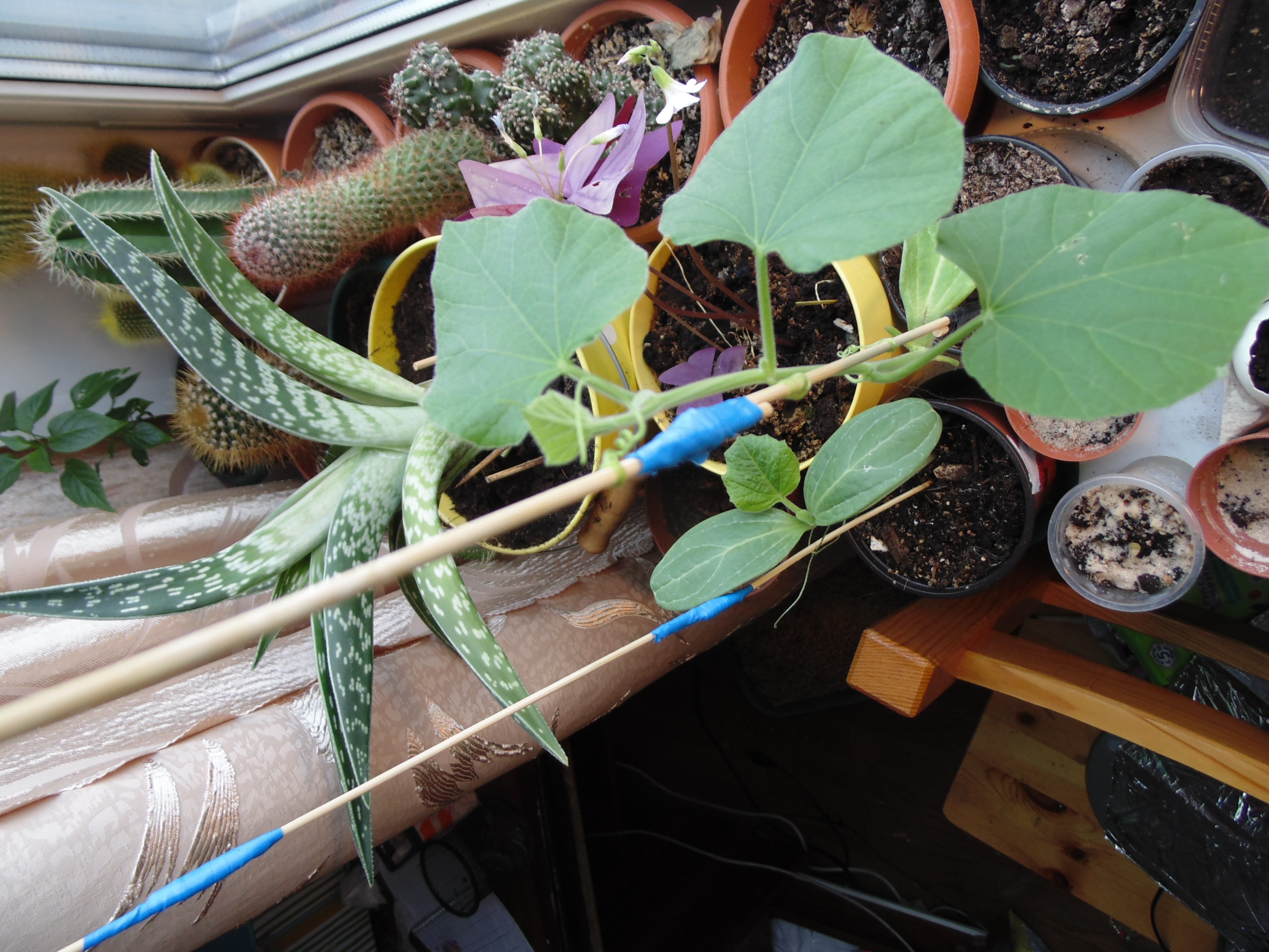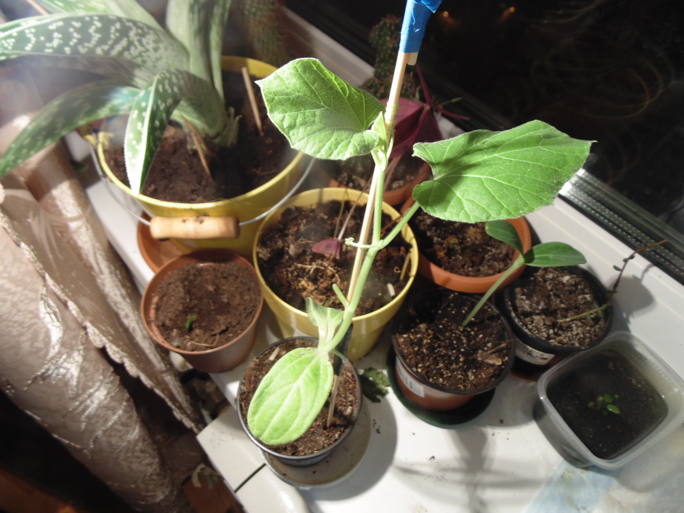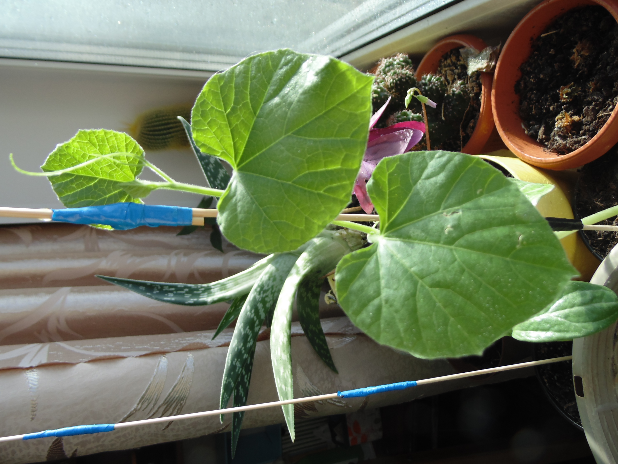 Оставил растения на попечение мамки. Лагенария выпустила бутон Остальное пока вроде растет Завелись какие-то мелкие жуки, надо будет вытравить, как вернусь.