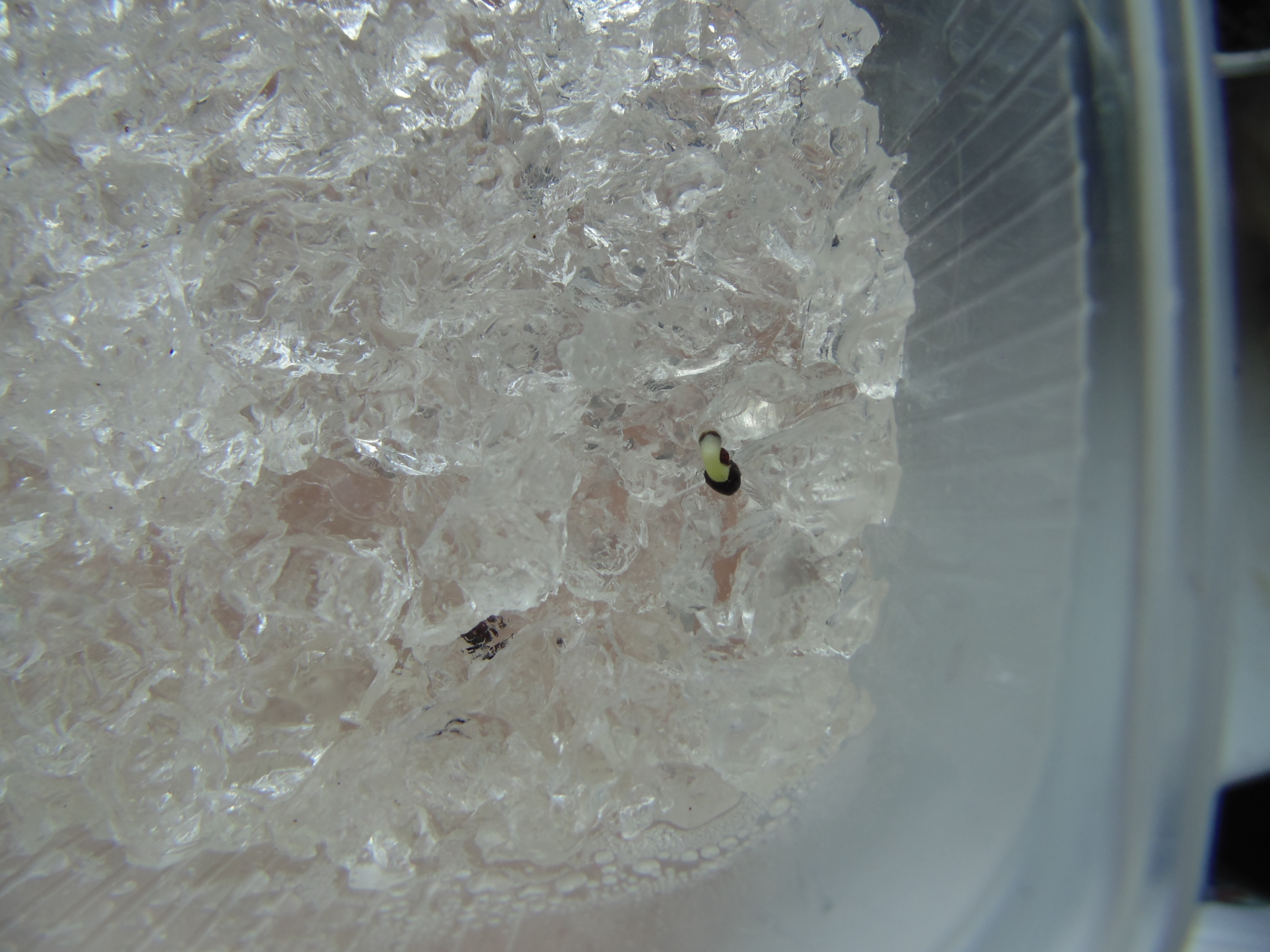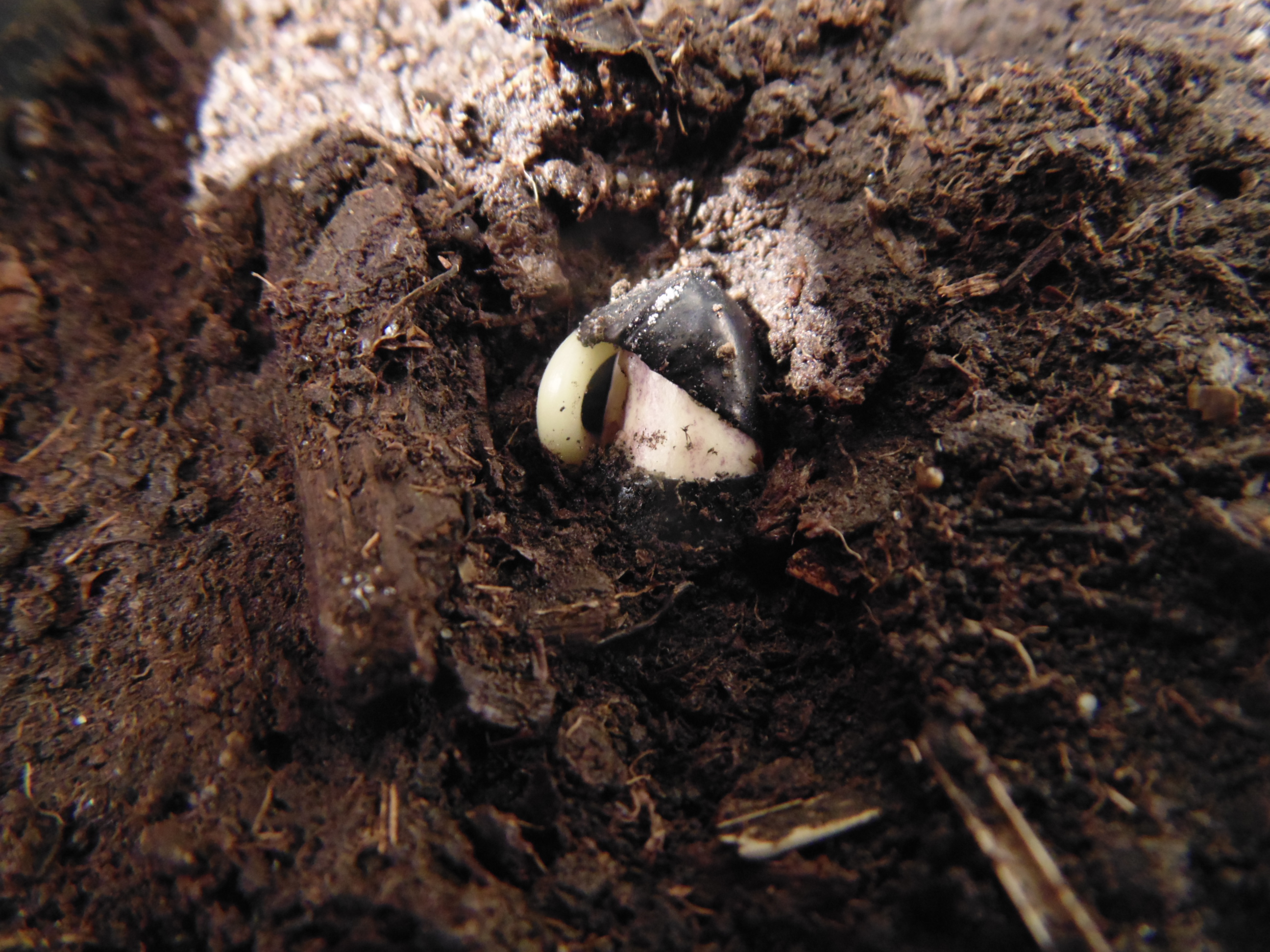 Спаржевая фасоль ссыт на ебло всем чахлым сортовым растениям. Только посмотрите на этого мужика, который был небрежно кинут в горшок и пророщен без плёнки! Ему всего два дня, а он уже выпускает очешуительной толщины корень и сбрасывает с себя эту невзрачную черную оболочку.