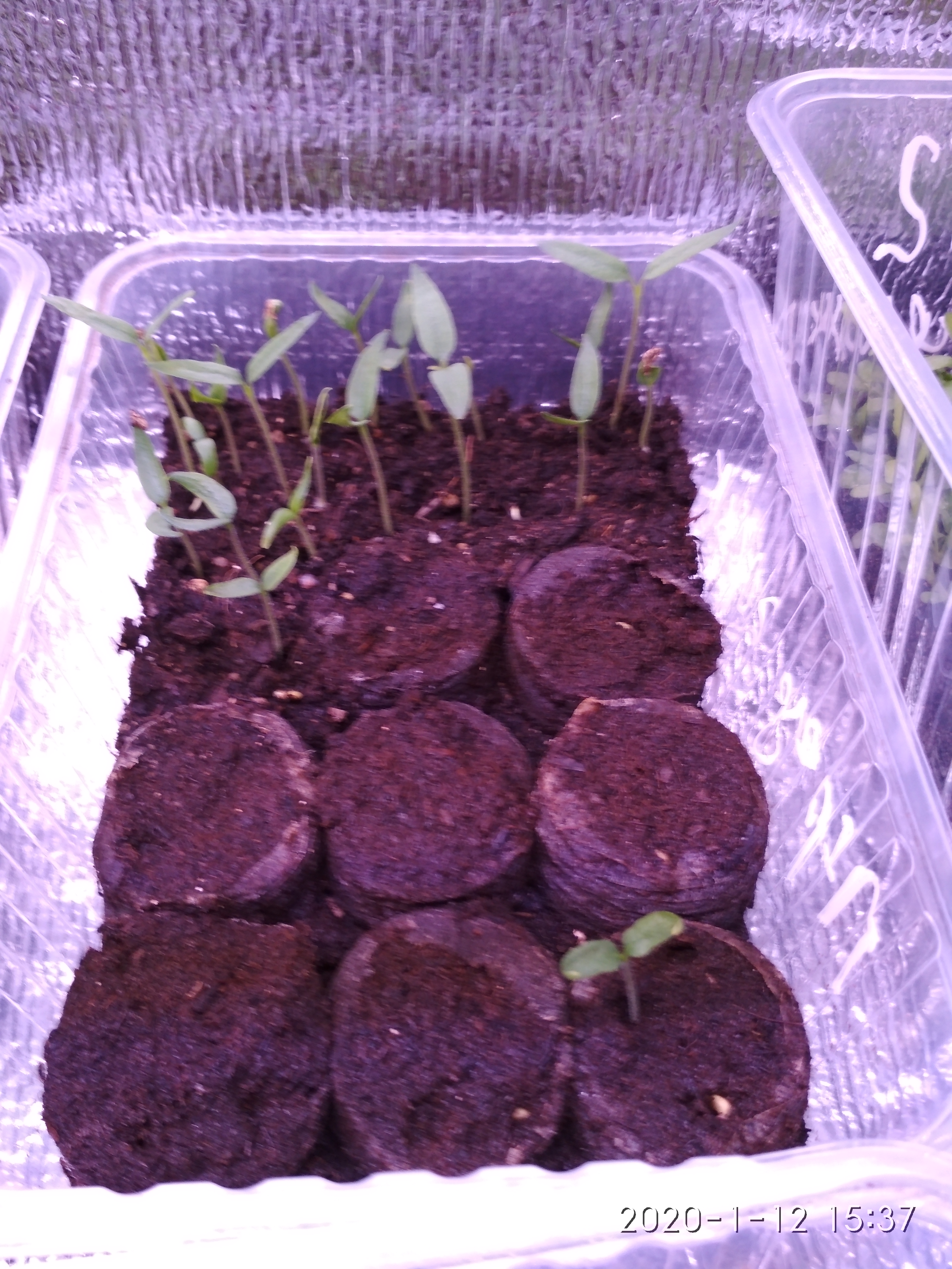 Ещё три вылезло. Вверху где просто земля это смесь покупного торфа в огромных мешках, который где-то скопали и продают дачникам, с лесной землёй. А торфяные таблетки, которые оказались менее эффективными какие-то импортные, не помню названия, куплены в обычном магазине для садоводов. Возможно, если их размять, то результат будет лучше.