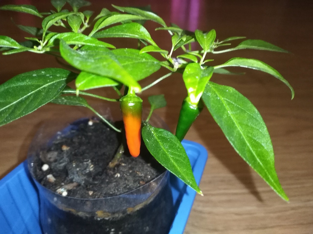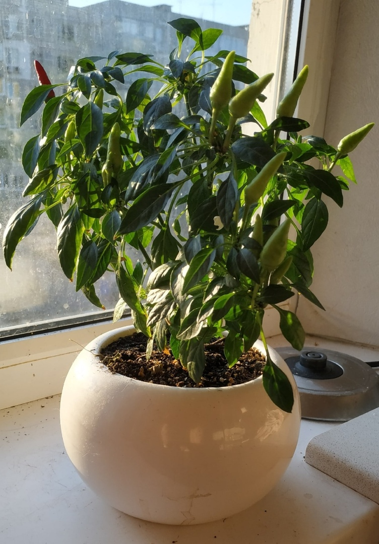 Начинающим и не только, перцеебам из отечественных семян порекомендую вот этот сорт - "Чензо". Вырастает в небольшое ветвистое деревце высотой 40-50 см. Не капризный, никогда не было проблем с недоливом/переливом. Цветет и завязывается очень дружно и без лишних манипуляций. Где-то через месяц после последней уборки сейчас снова штук 20 перцев висит. И это в Сибири в апреле и мае. Плоды крупные, толстостенные (для домашних кустов), достаточно вкусные и острые (заявлено 30к), мне сравнивать не с чем, но на порядок острее кочукары или тайских, которые в супермаркетах продаются. С пары кустов, думаю спокойно можно собрать на бутылочку своего соуса. Я сейчас все красные перцы срезаю и морожу в контейнере, осенью весь урожай перемолю, заферментирую и захуярю себе чили.